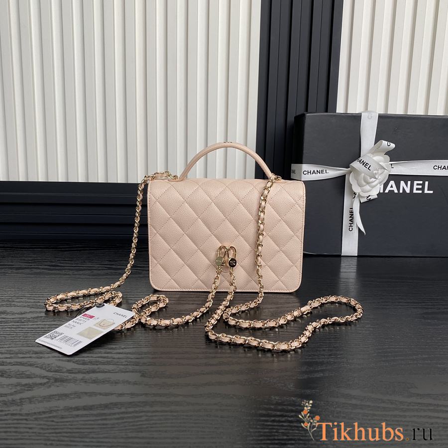 Chanel Top Handle Flap Bag Pink Caviar Gold 18x14x3cm