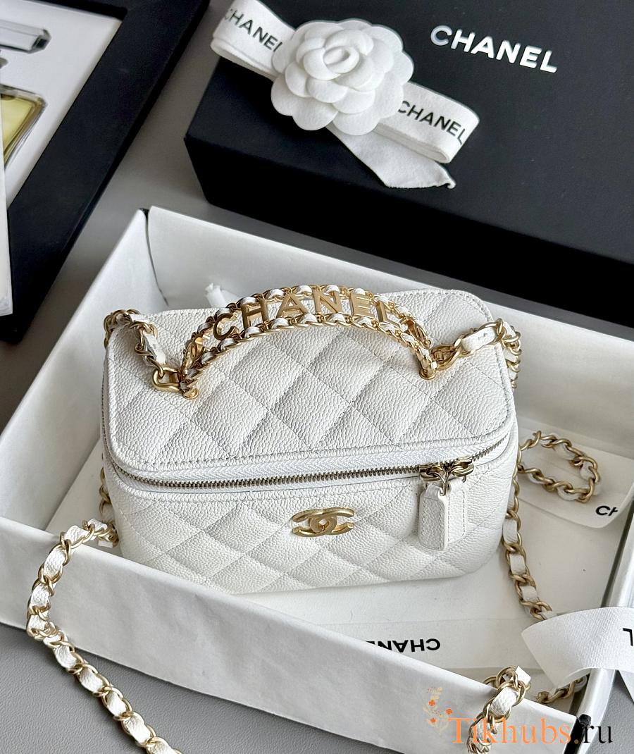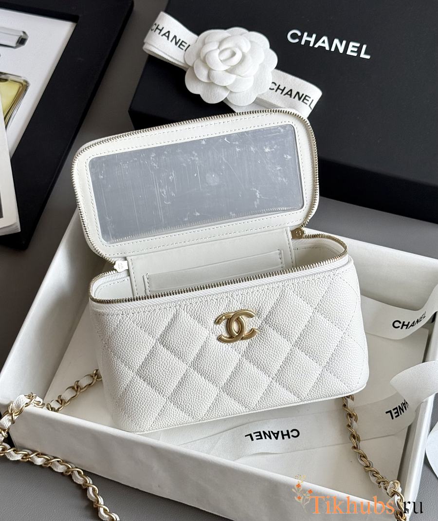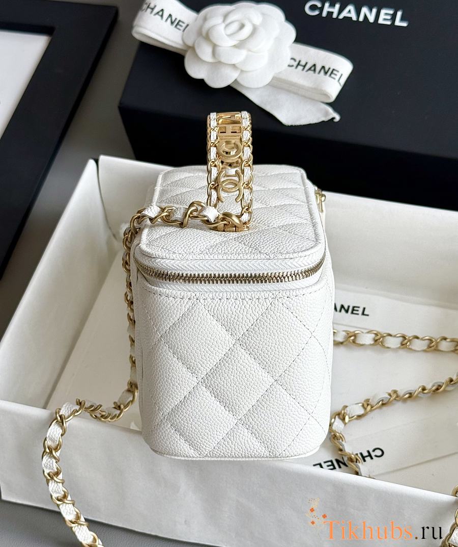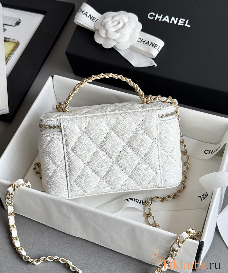 Chanel Top Handle Vanity Case White Caviar Gold 17x9.5x7.8cm