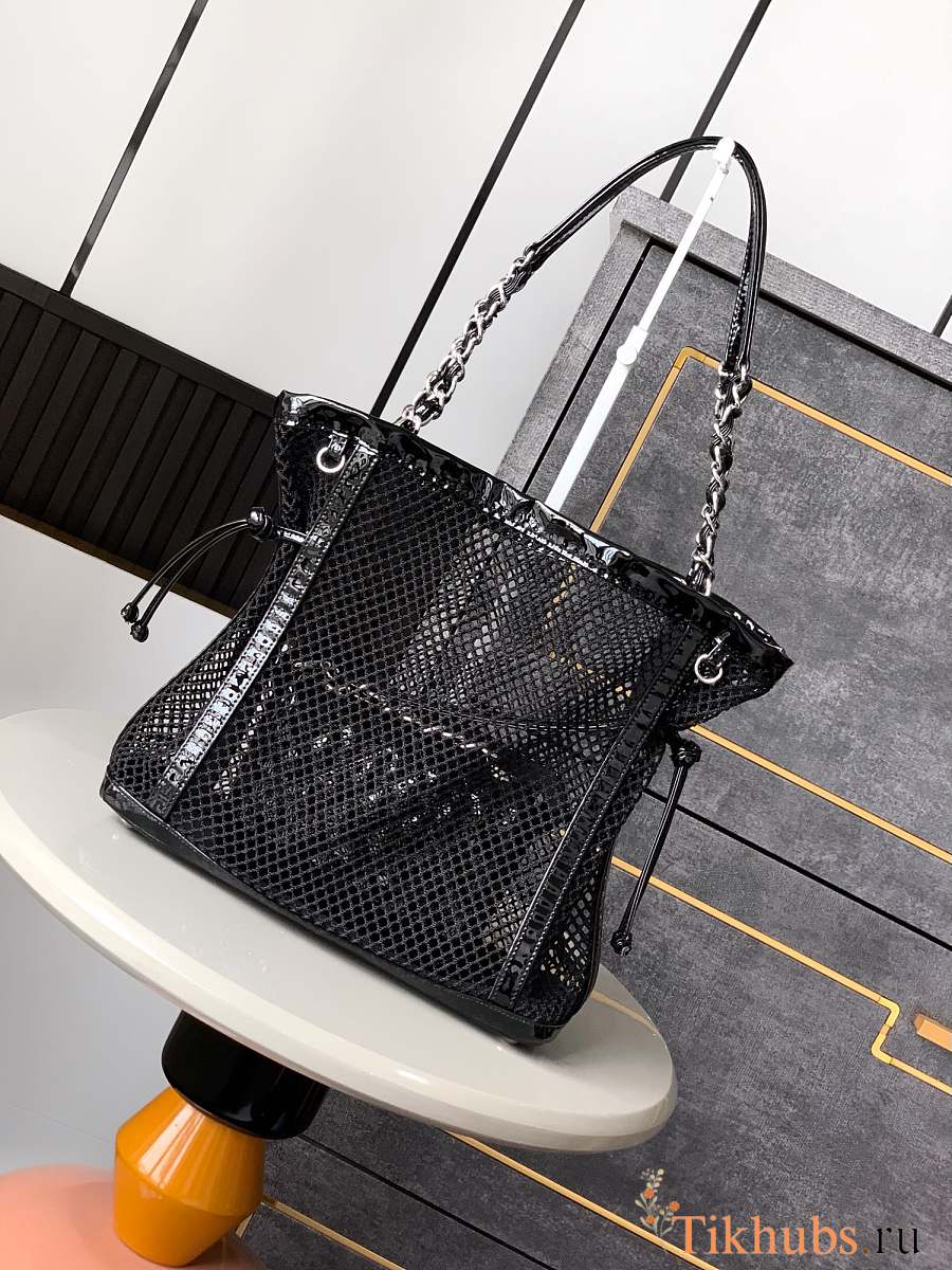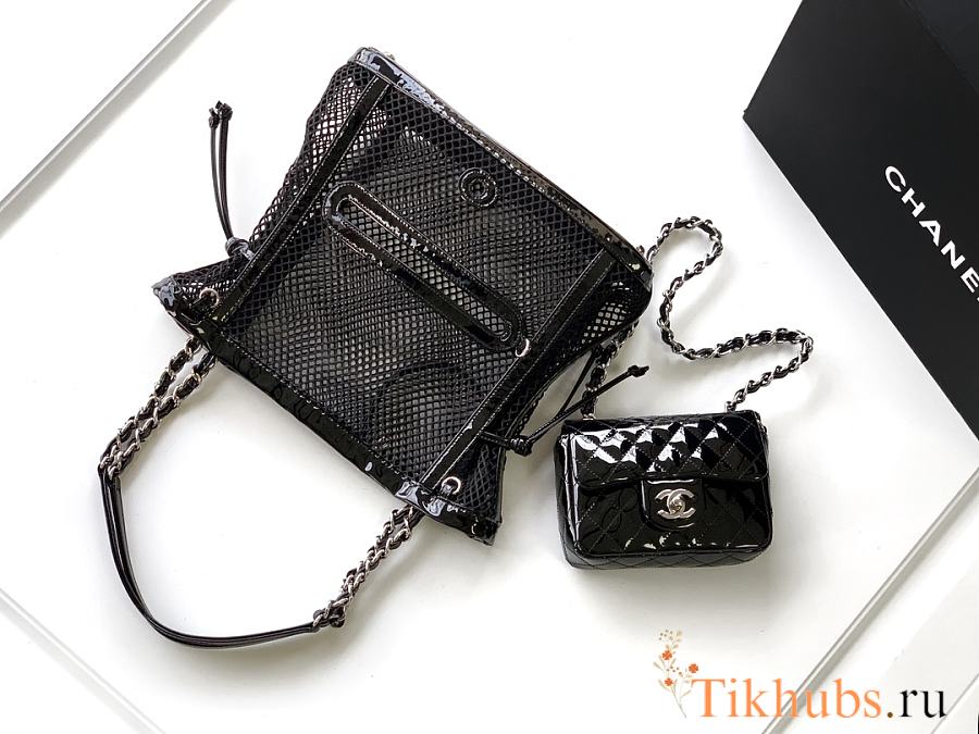 Chanel Tote Flap Bag Black Patent 26x28x9cm