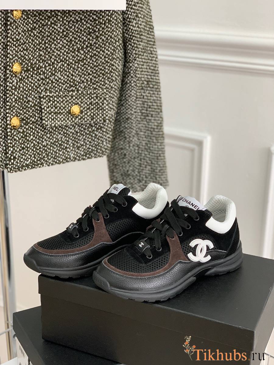 Chanel Trainers Mesh Suede Black White Sneaker