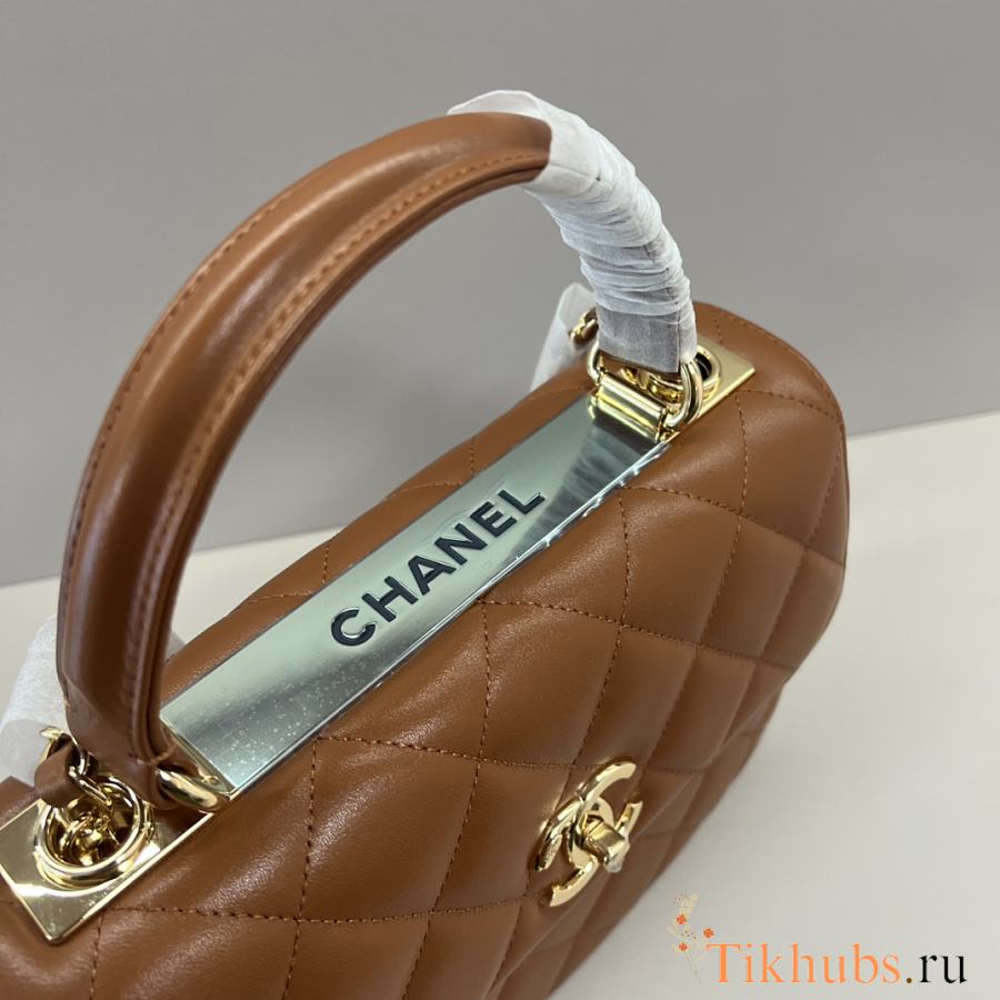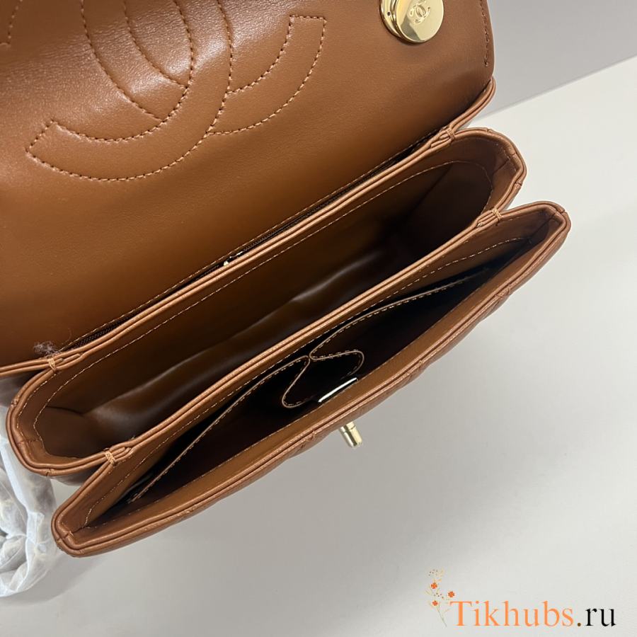 Chanel Small Flap Bag Top Handle Brown 22x21x6.5cm