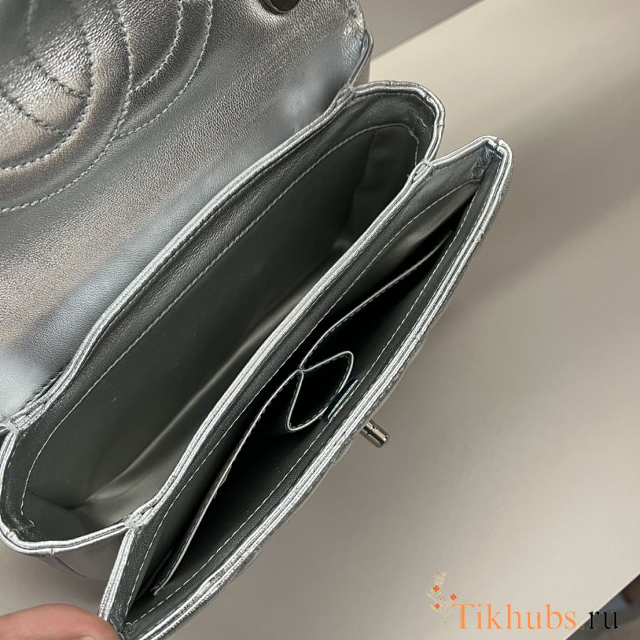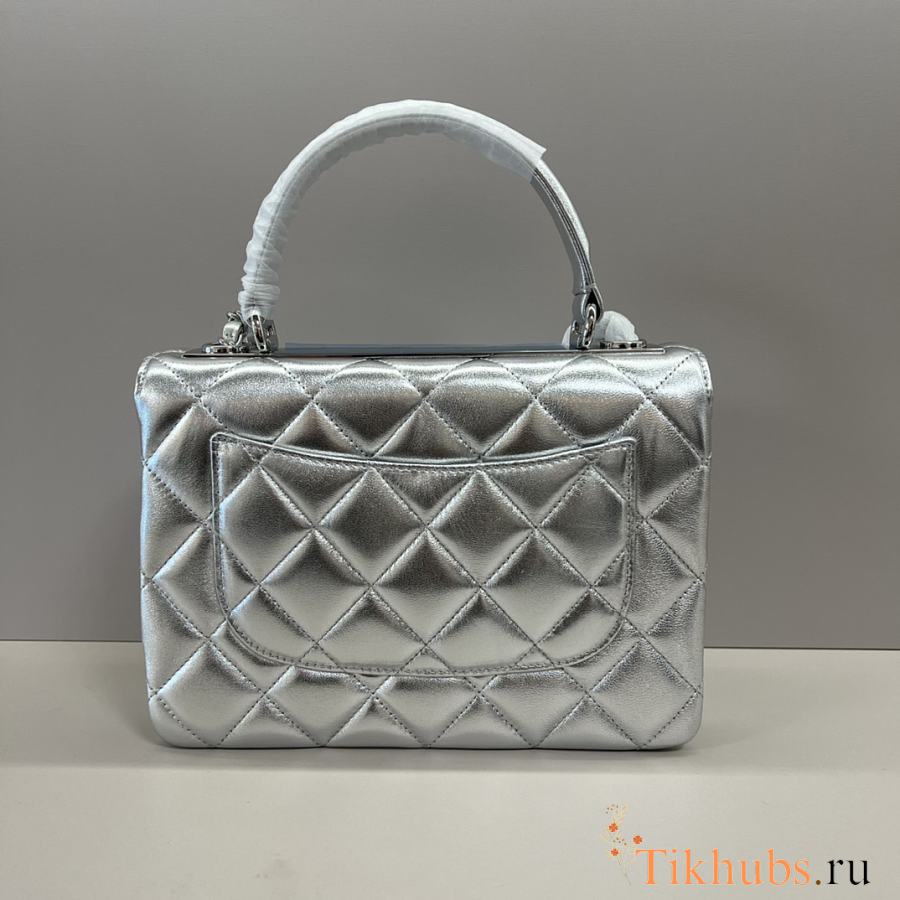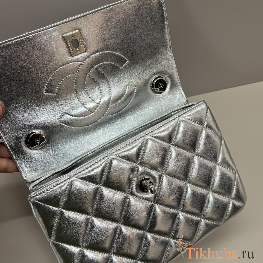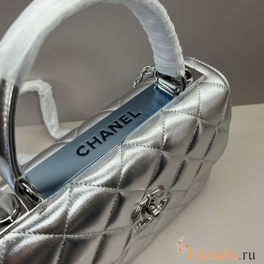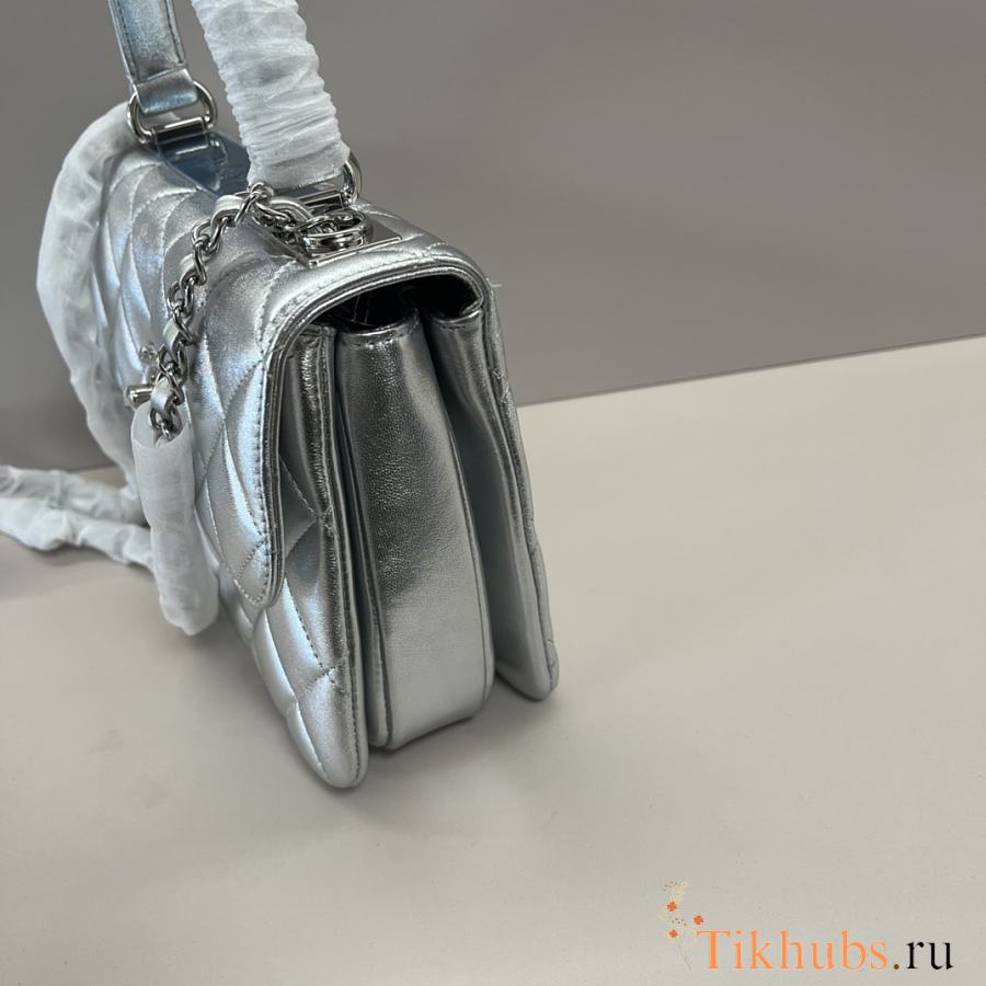 Chanel Trendy Top Handle Silver Lambskin Bag 25cm
