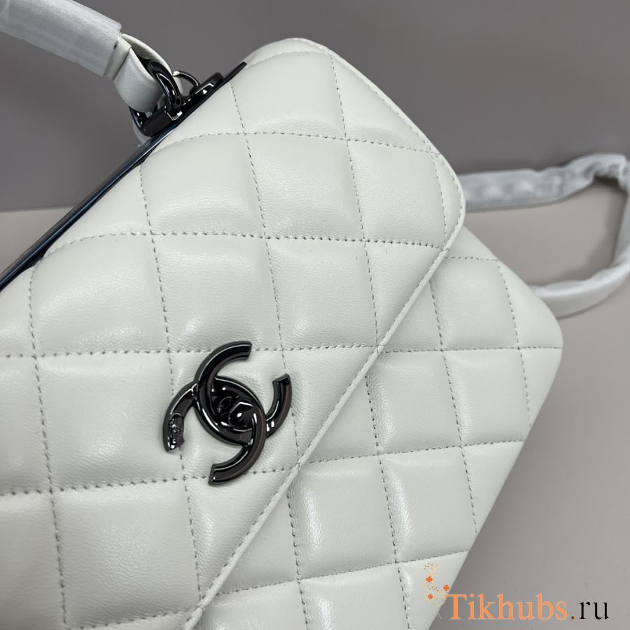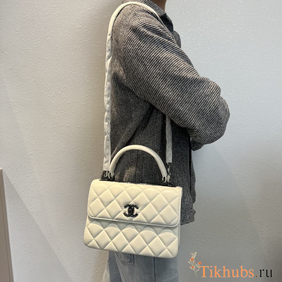 Chanel Trendy Top Handle White Black Lambskin Bag 25cm