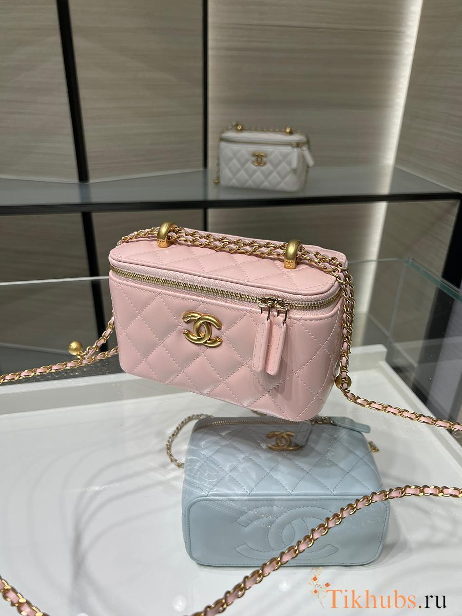 Chanel Vanity Case Pink Lambskin Gold 17x9.5x8cm