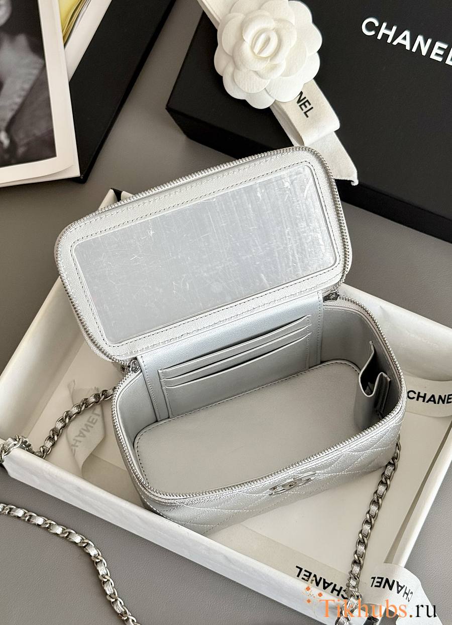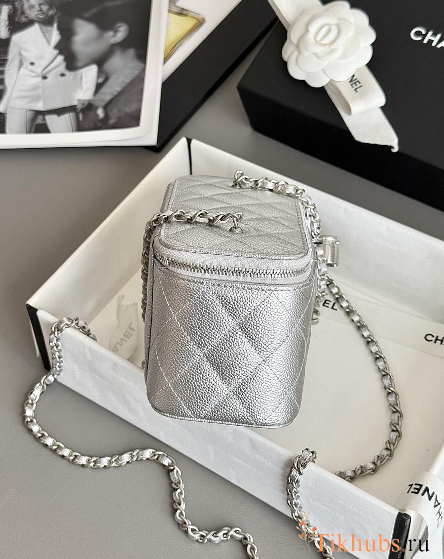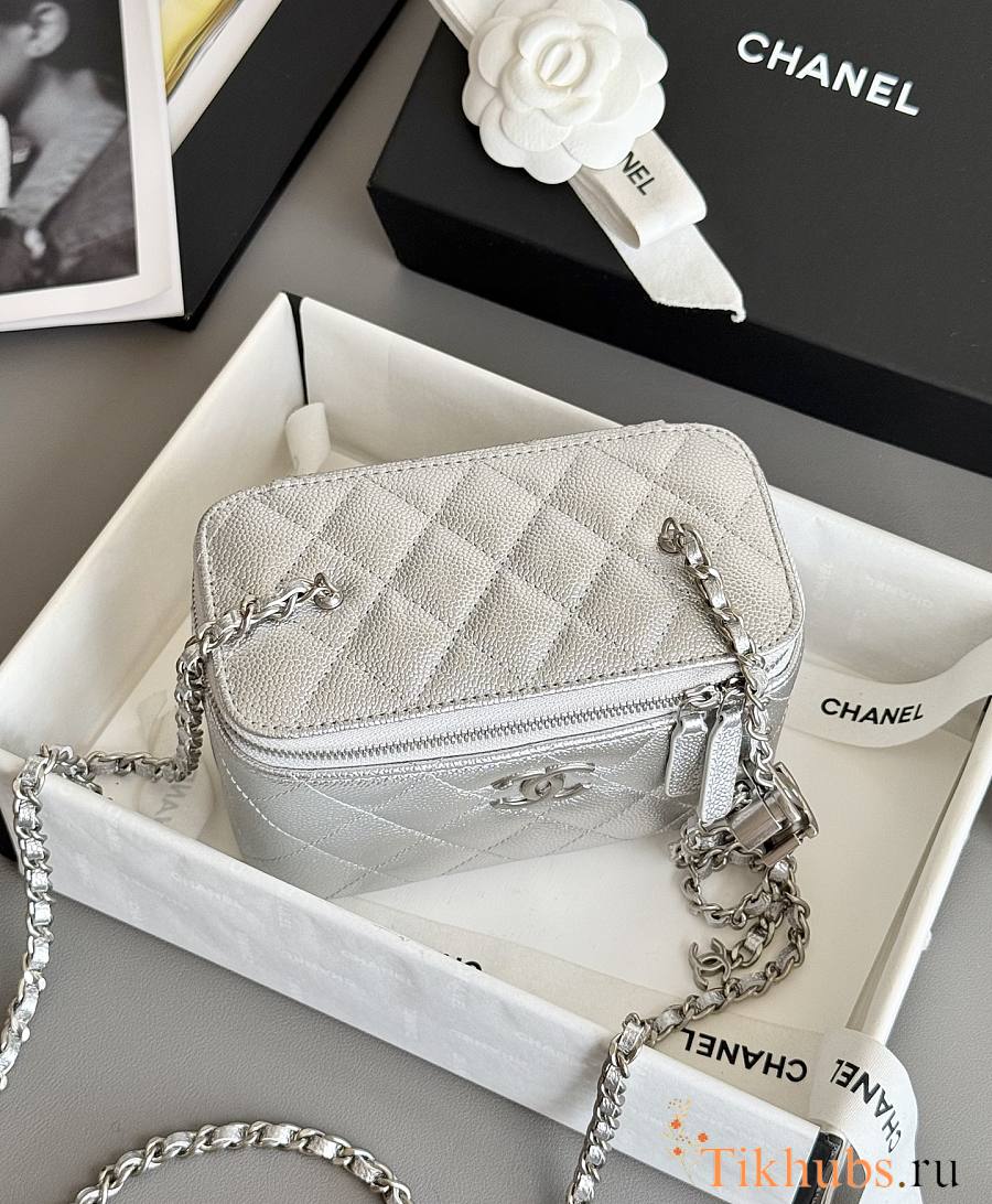 Chanel Vanity Case Silver Caviar 17x9.5x8cm