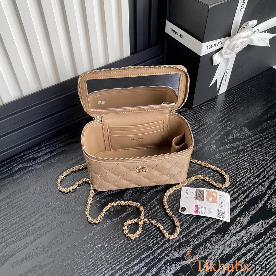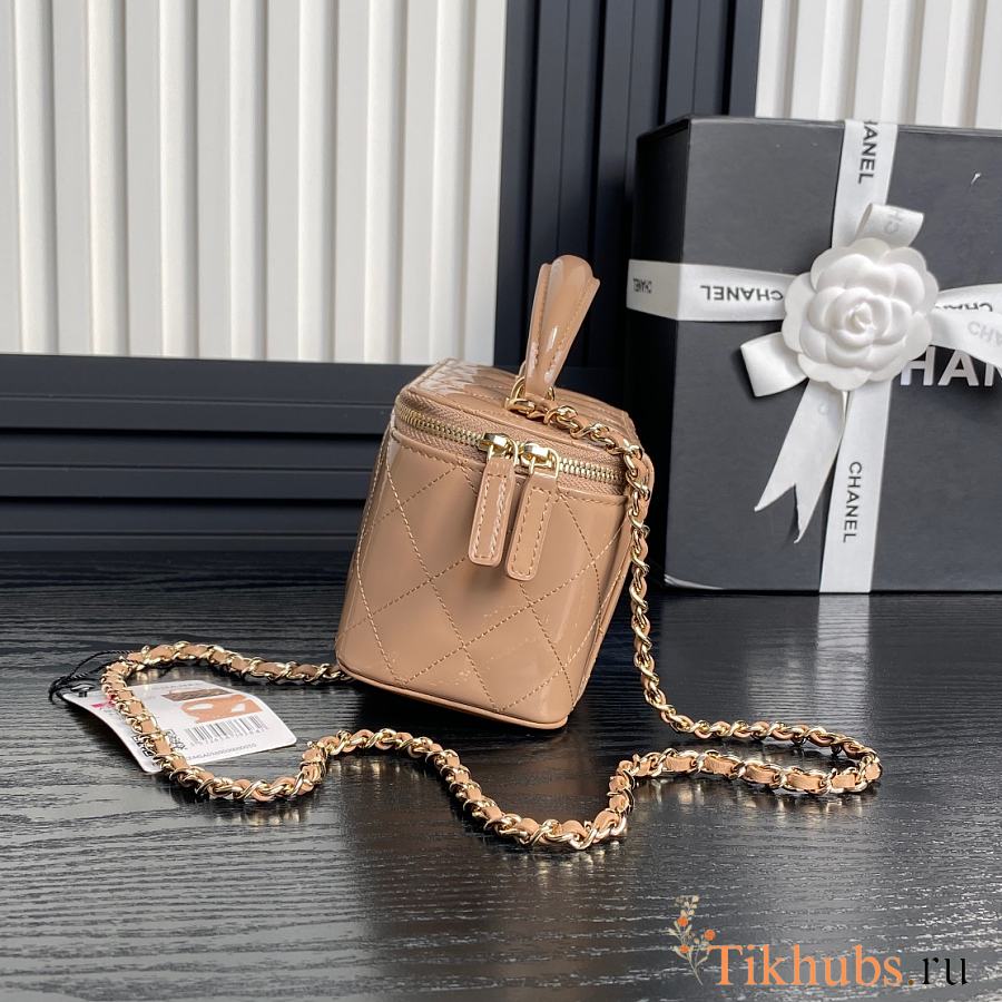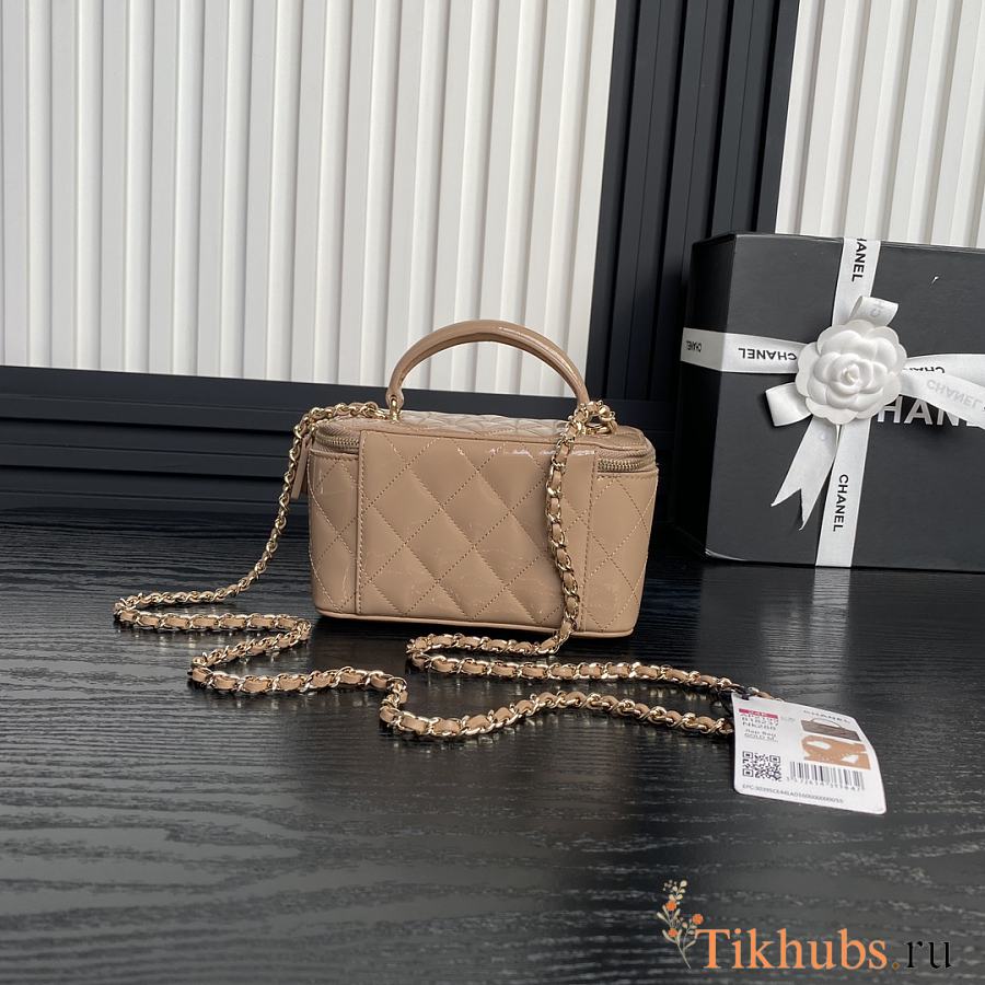 Chanel Vanity Case Top Handle Beige Patent 17cm