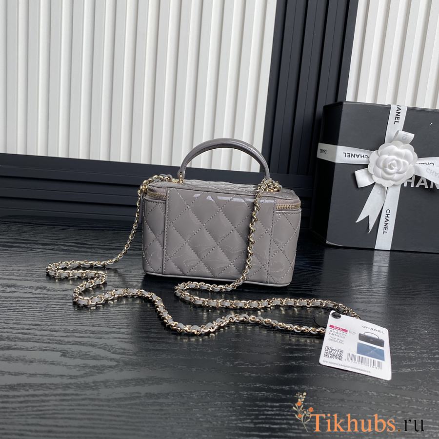 Chanel Vanity Case Top Handle Grey Patent 17cm