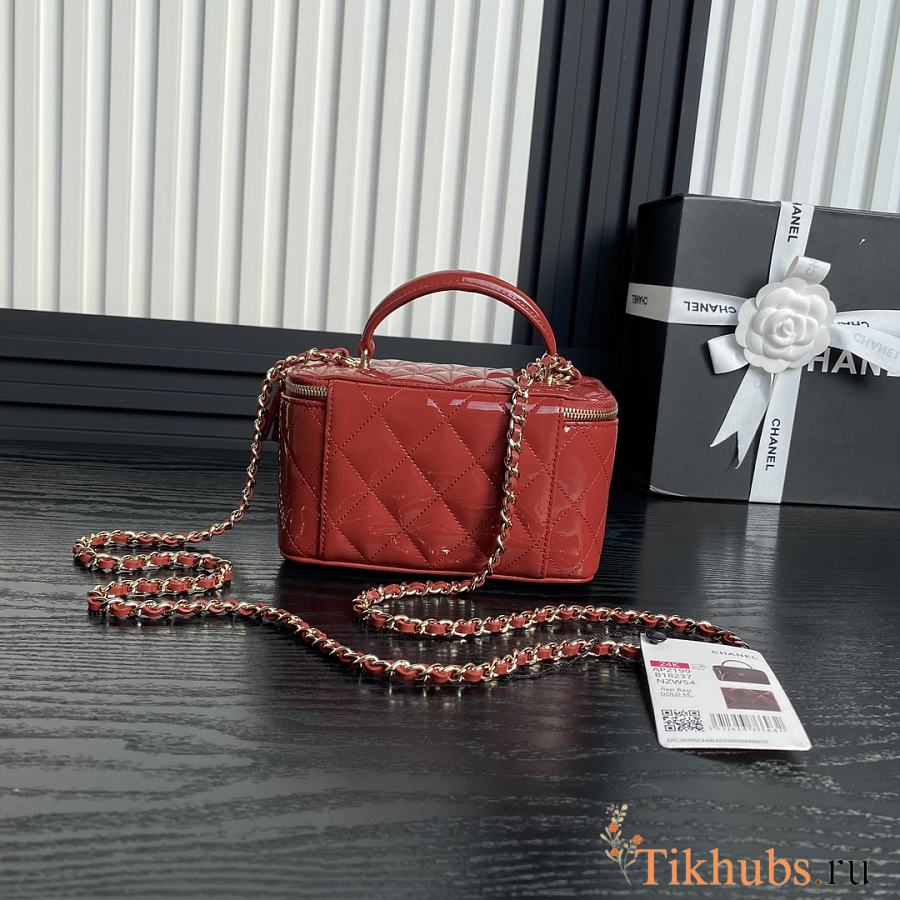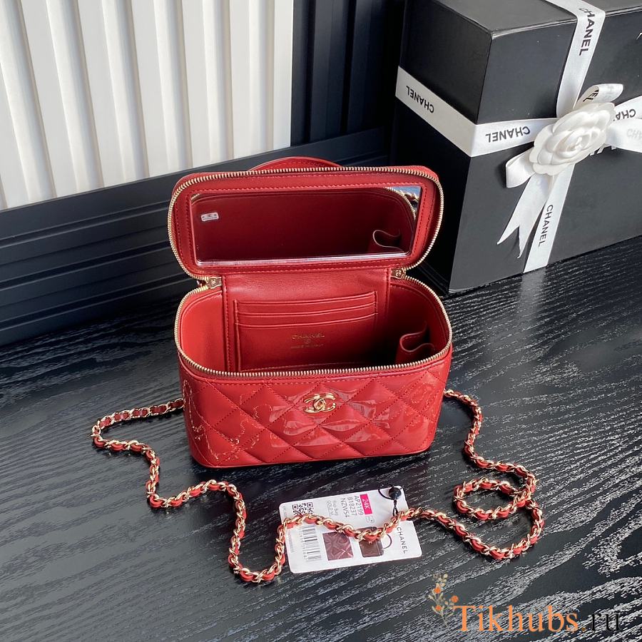Chanel Vanity Case Top Handle Red Patent 17cm