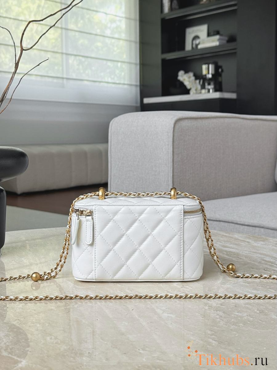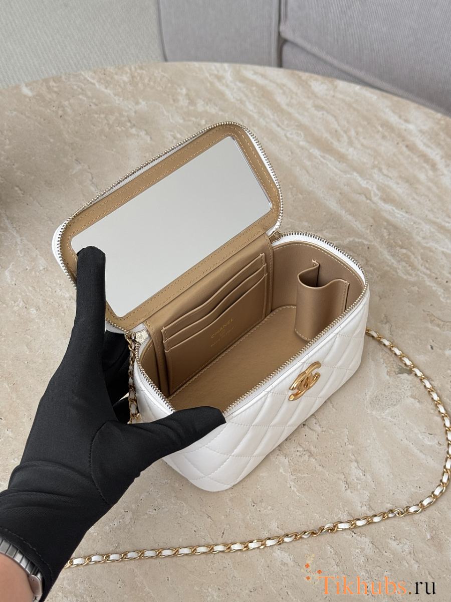 Chanel Vanity Case White Lambskin Gold 17x9.5x8cm