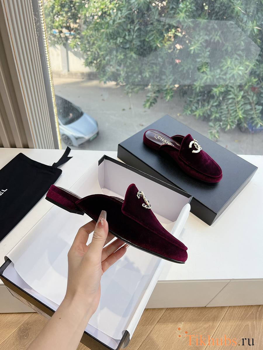 Chanel Velvet Red Wine Slides