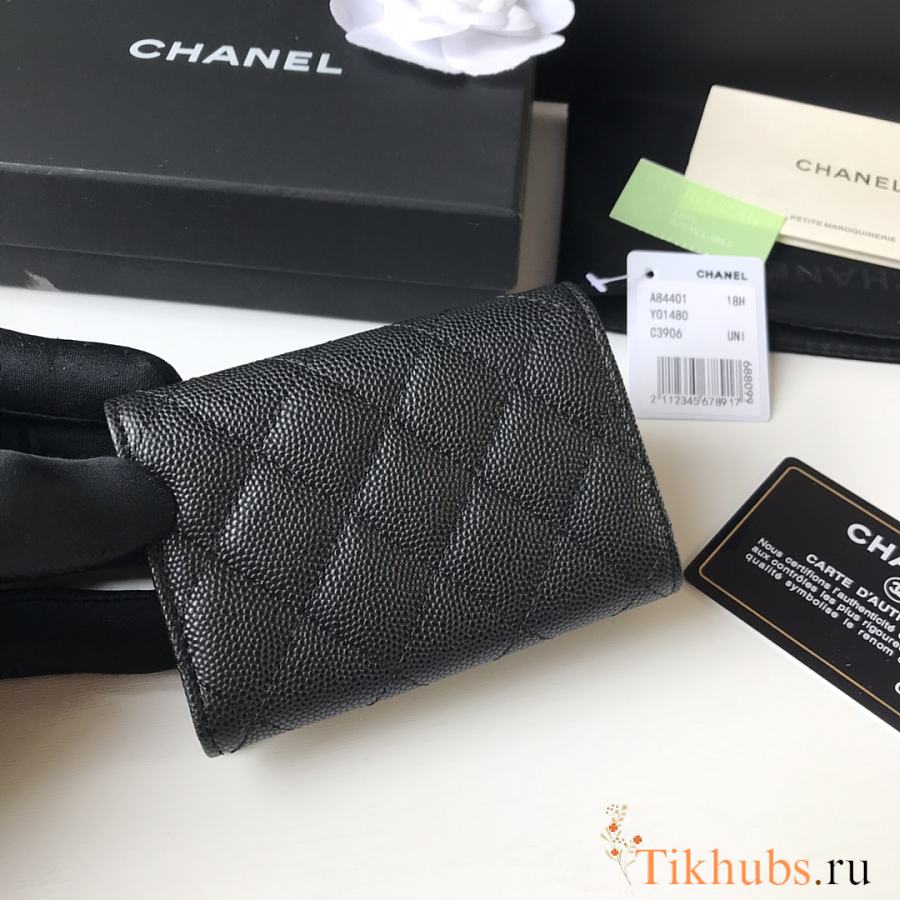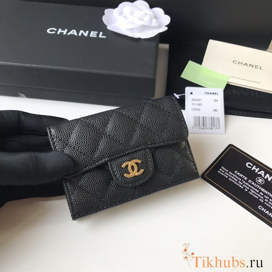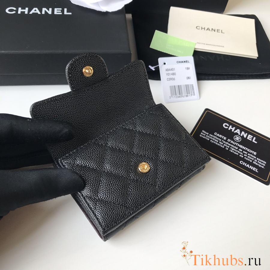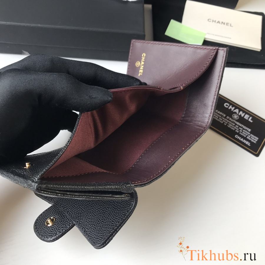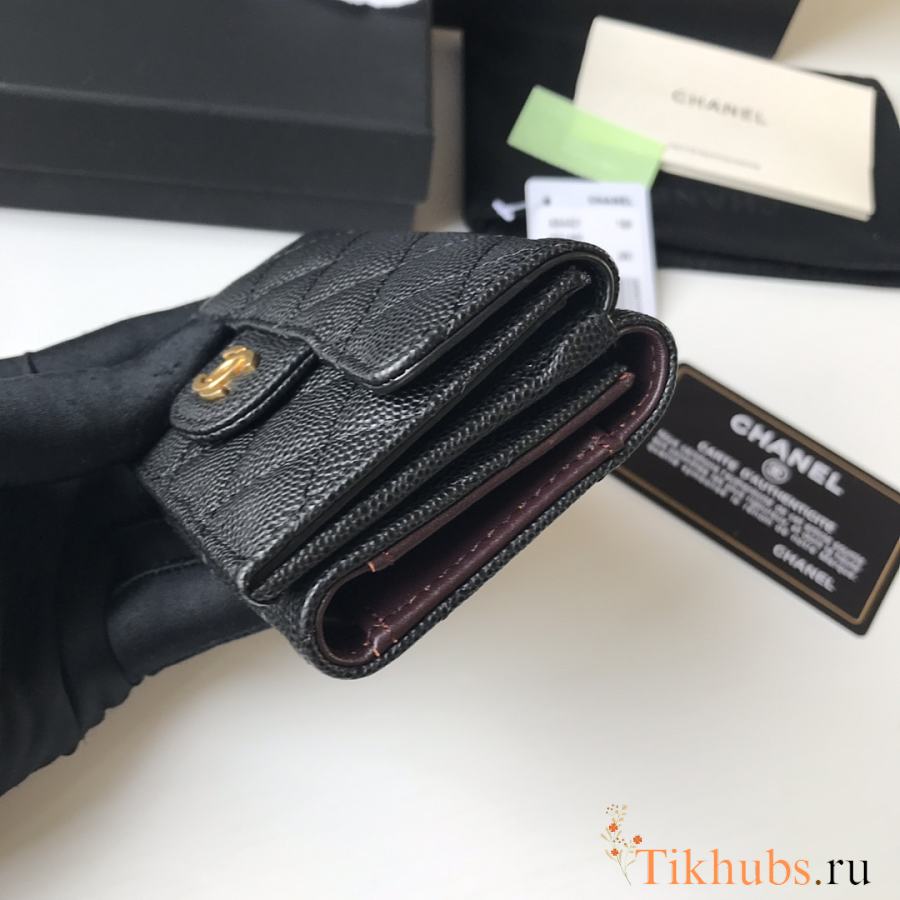 Chanel Wallet Black Caviar Gold 10.5x7.5x3cm