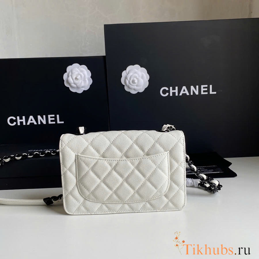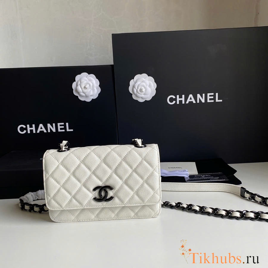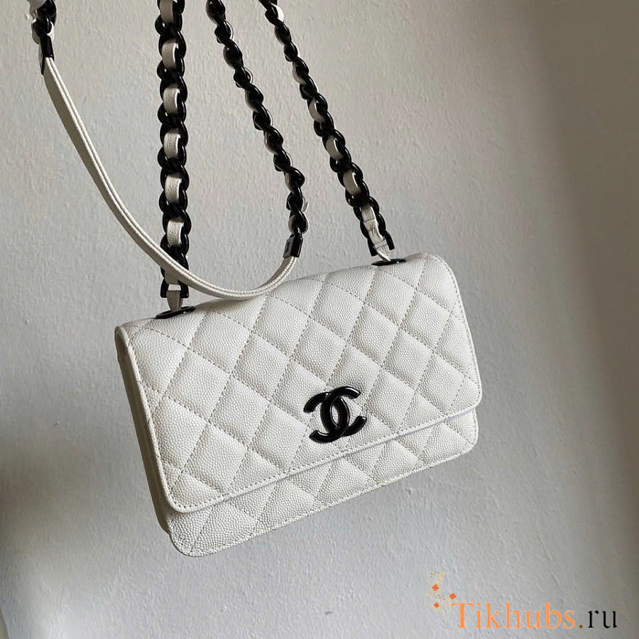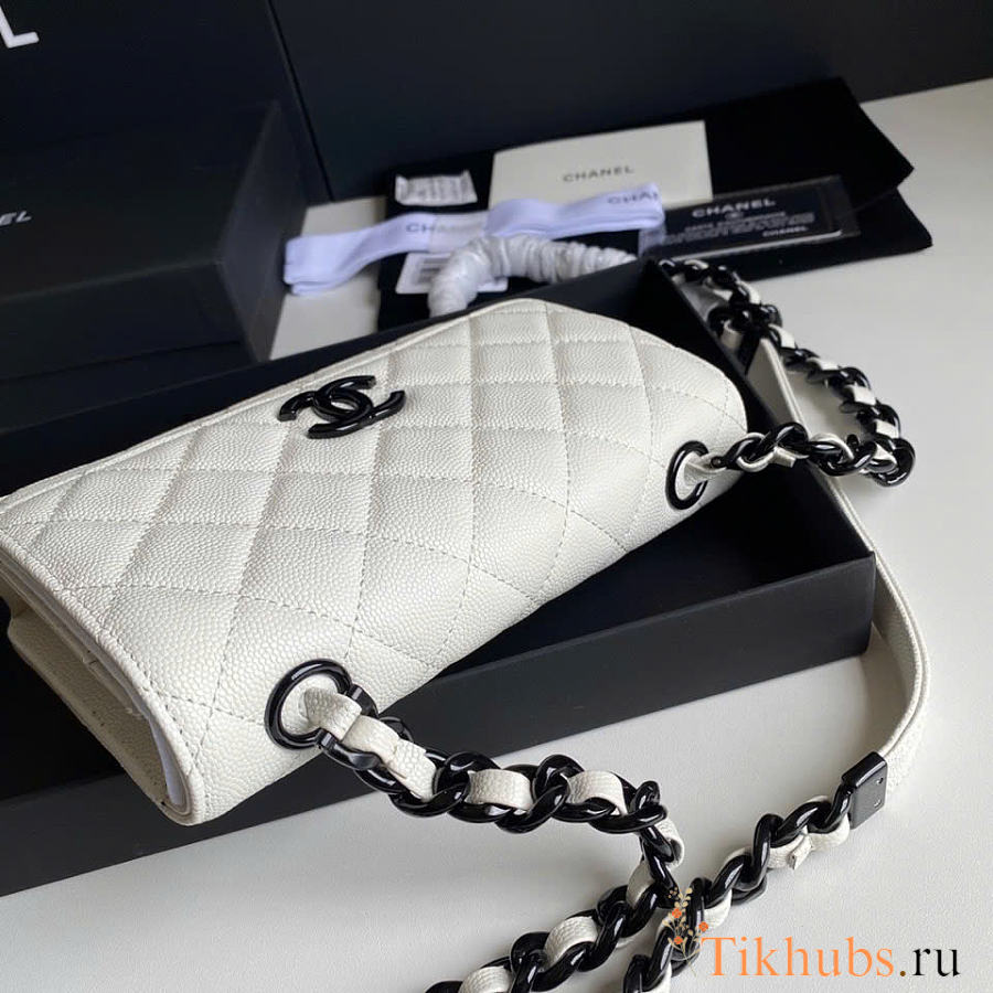 Chanel Wallet Chain Woc White Black Caviar 19cm