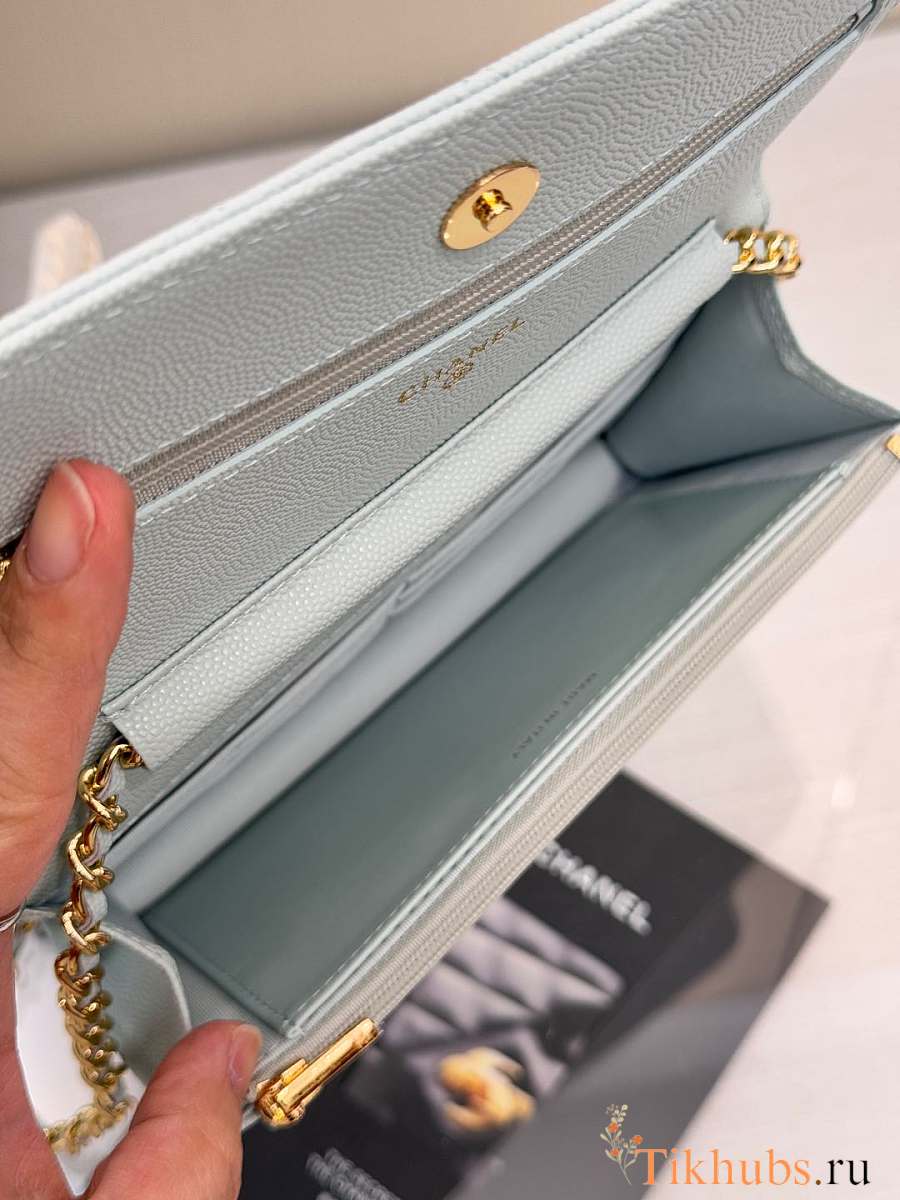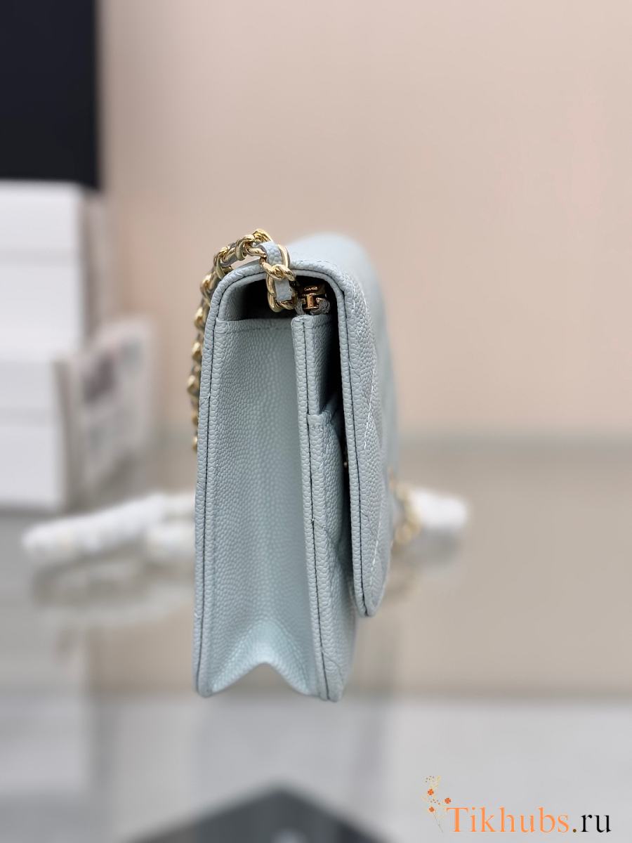 Chanel Wallet On Chain Woc Light Blue Caviar Gold 19cm