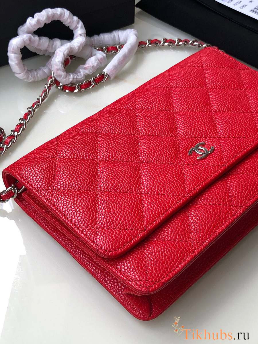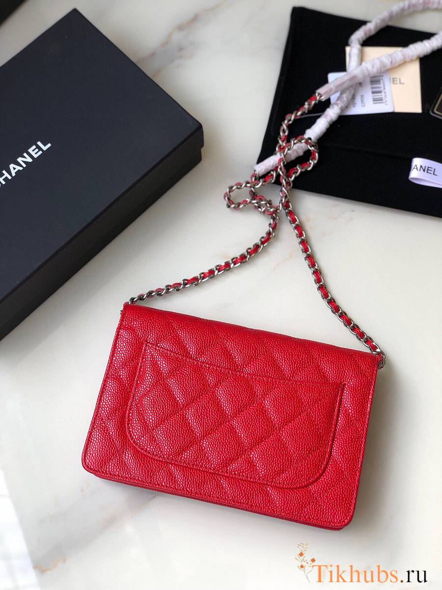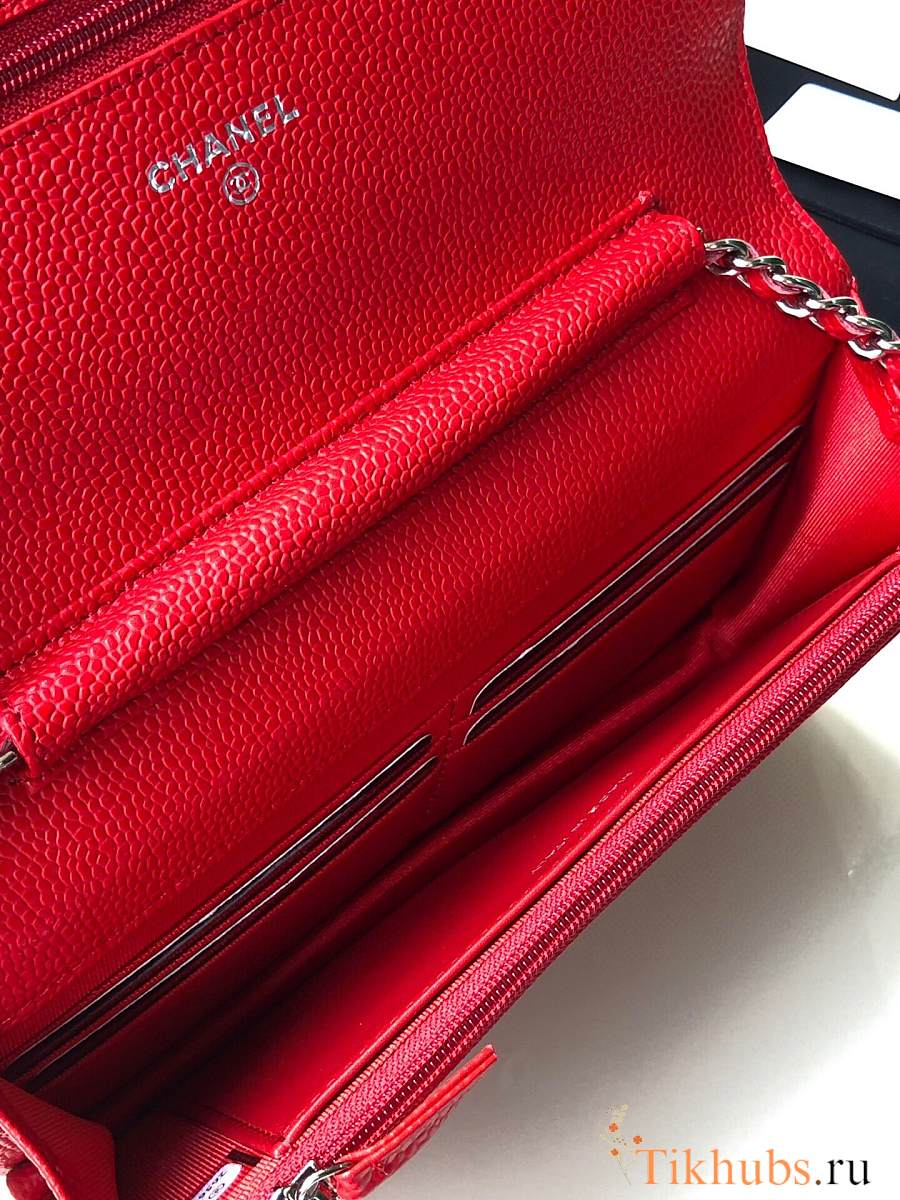 Chanel Wallet On Chain Woc Red Caviar Silver 19x12x3.5cm
