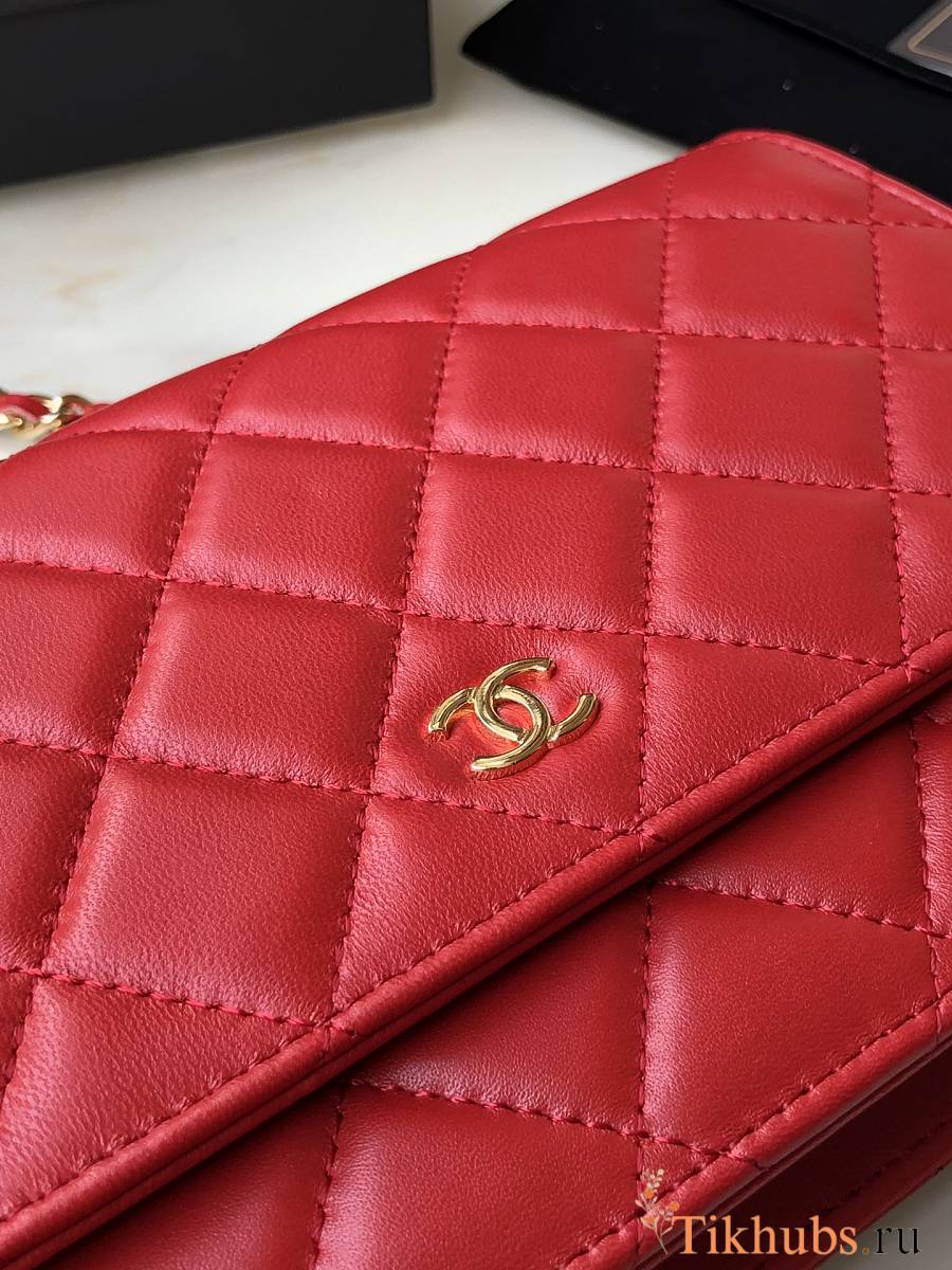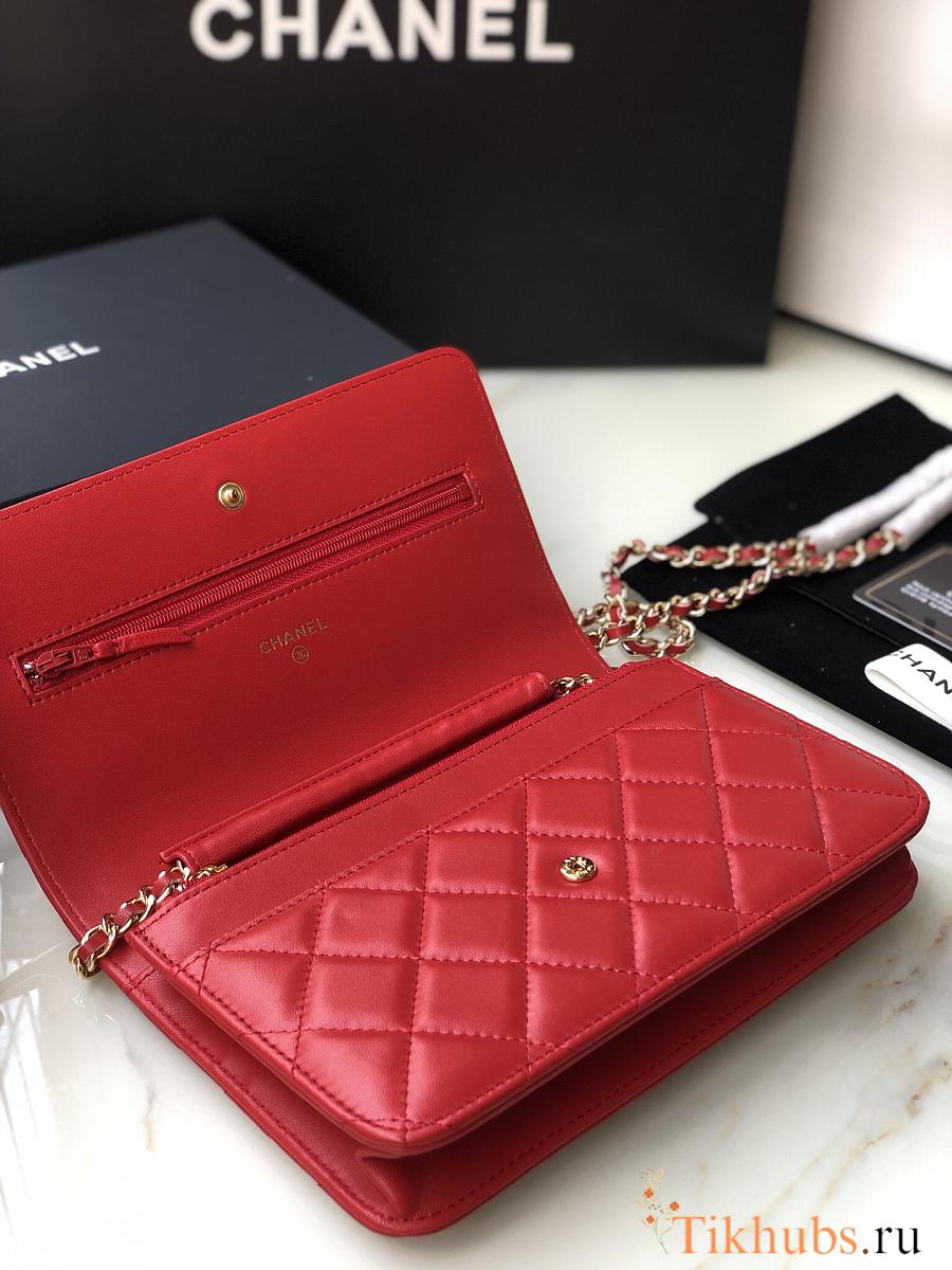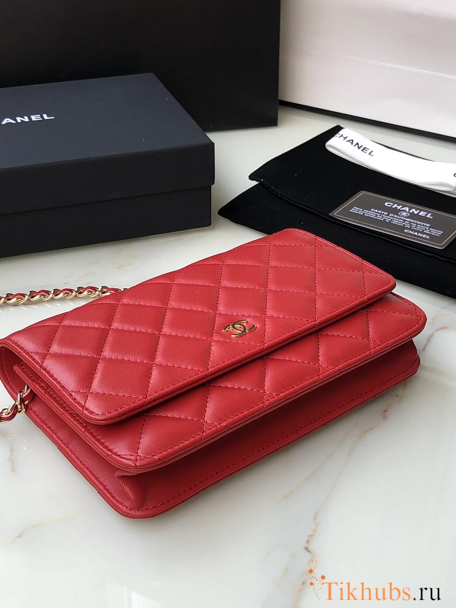 Chanel Wallet On Chain Woc Red Lambskin Gold 19x12x3.5cm