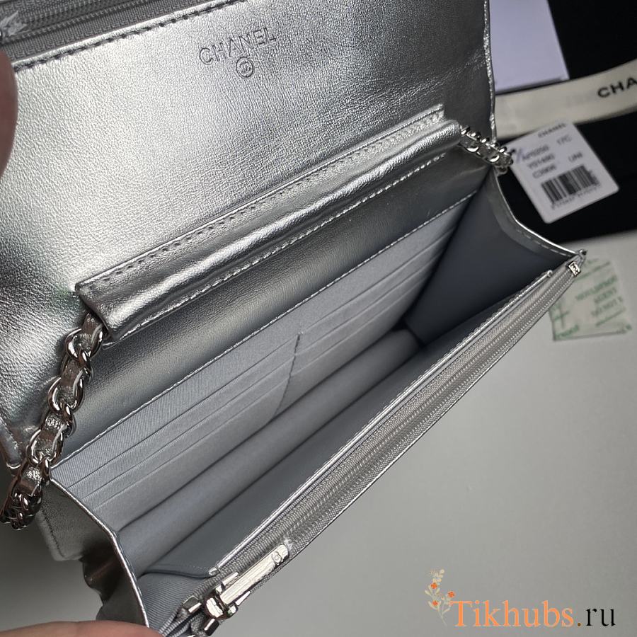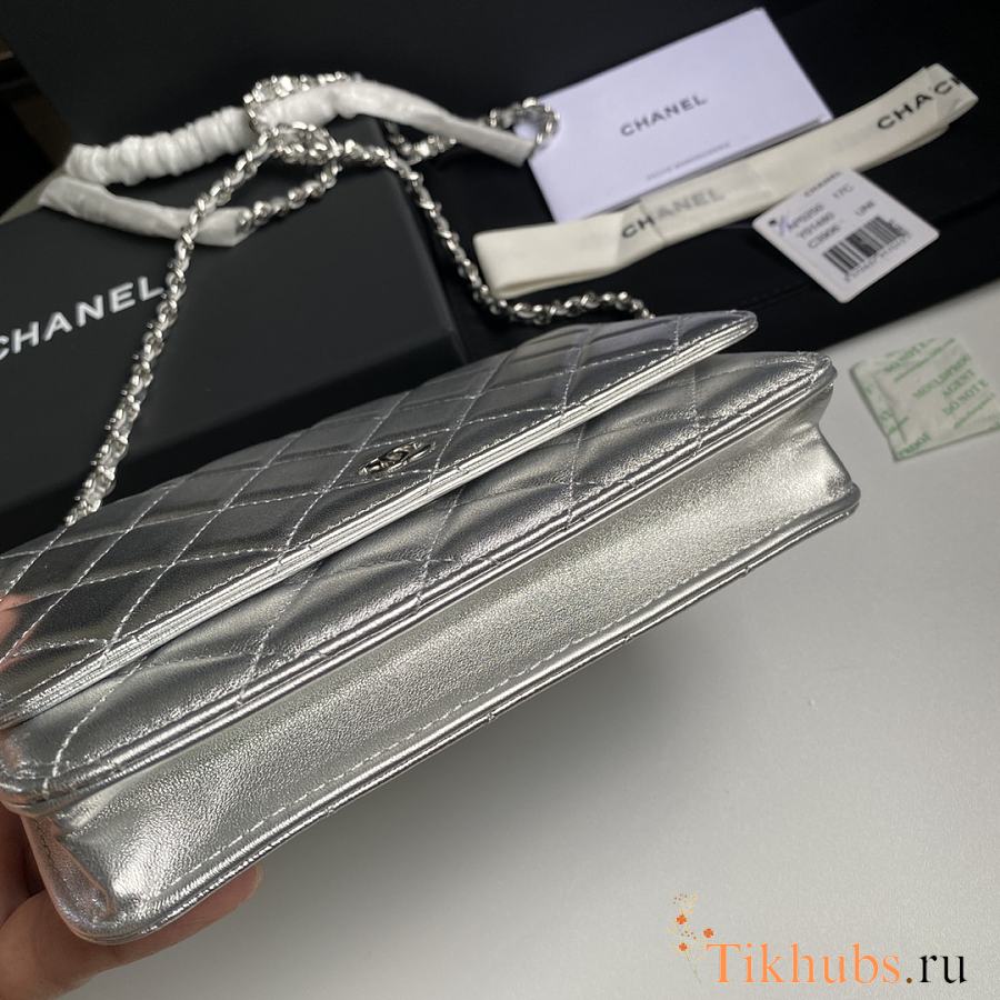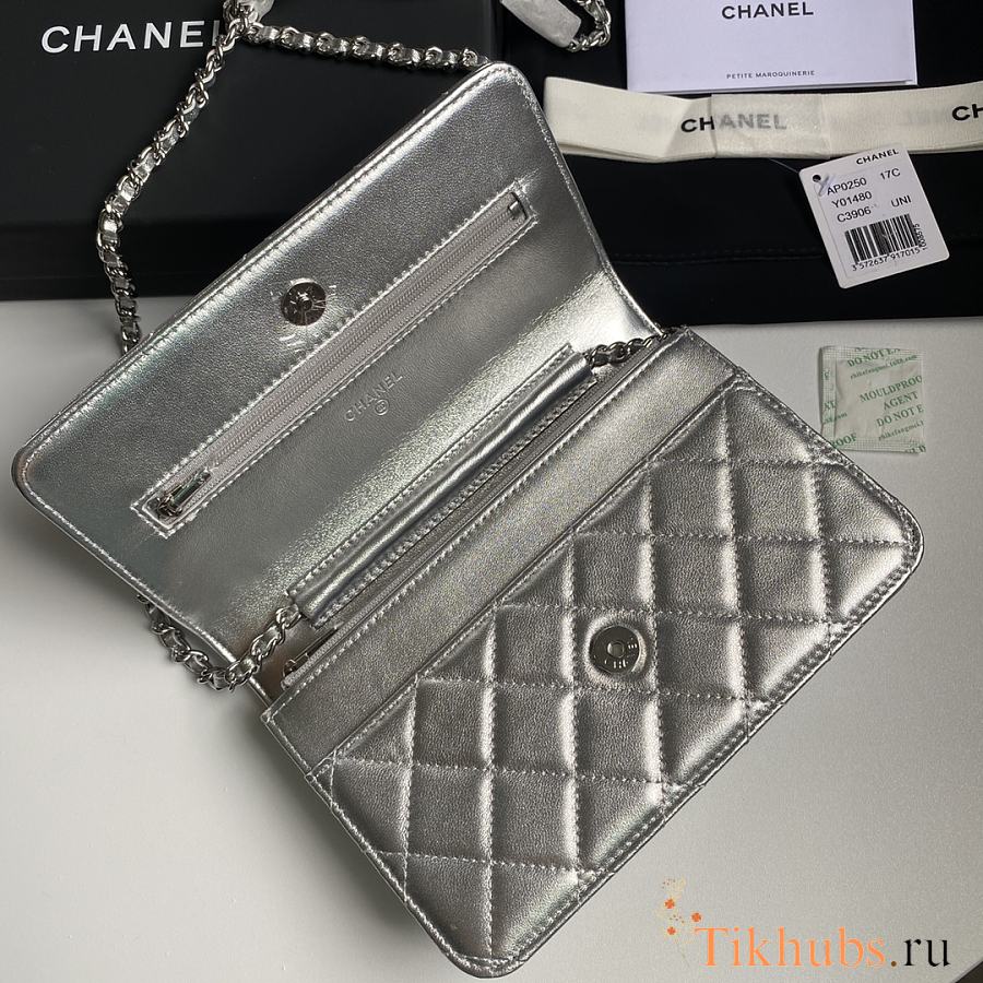 Chanel Wallet On Chain Woc Silver Lambskin 19cm
