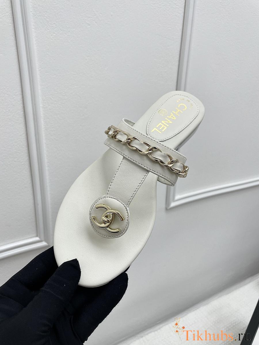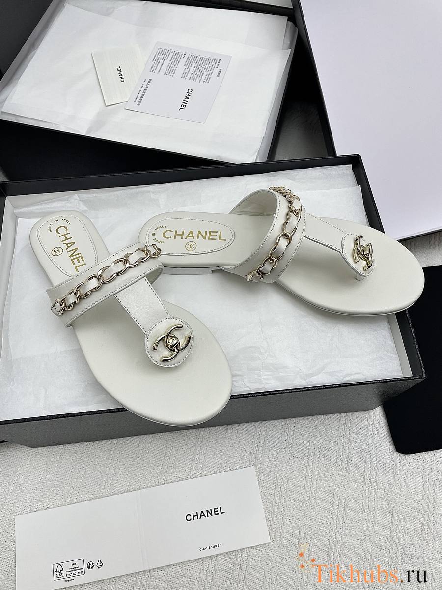 Chanel White Slides 10