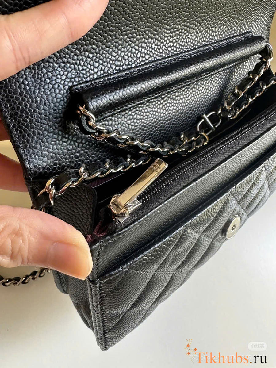 Chanel Woc Wallet Chain Bag Caviar Black Silver 19x12x3cm