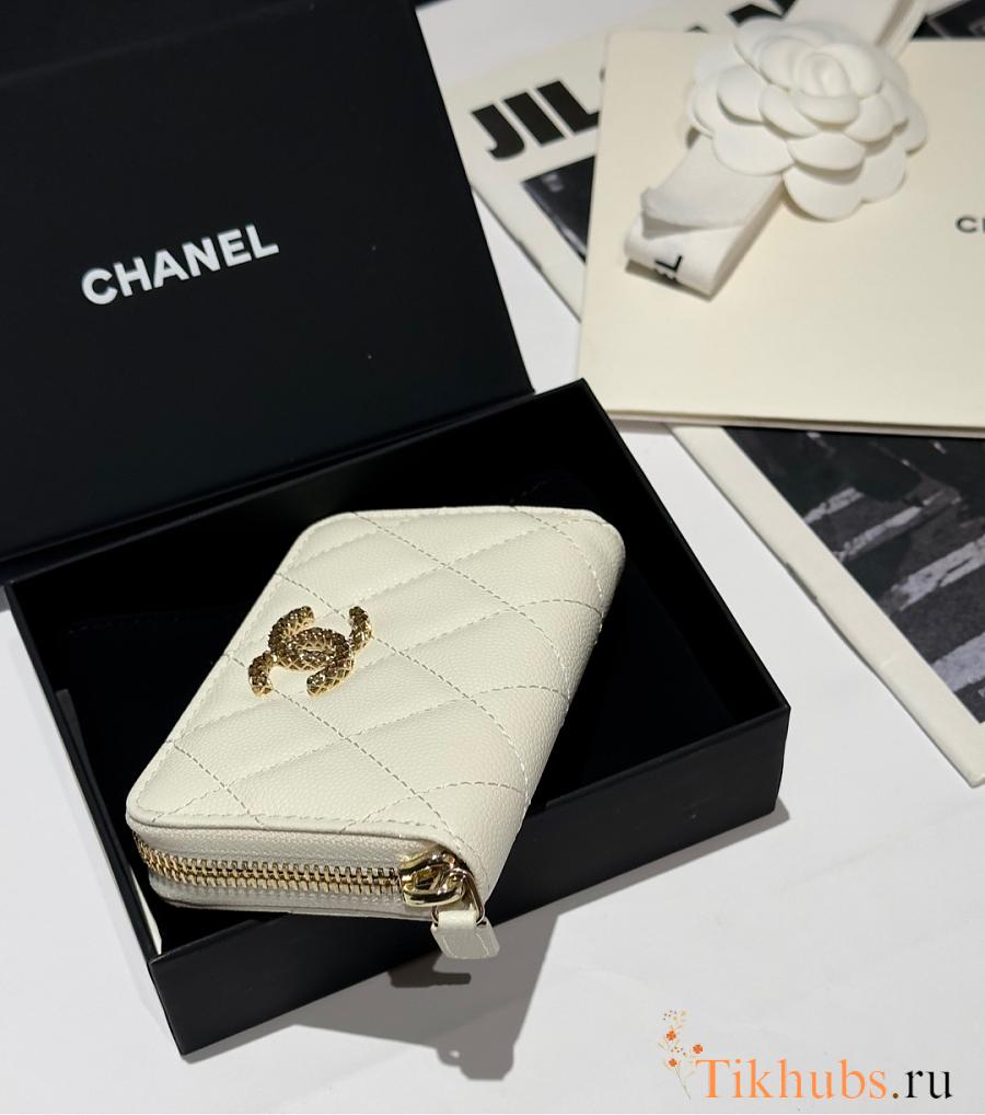Chanel Zip Coin Purse White Caviar 11.2x7.5cm