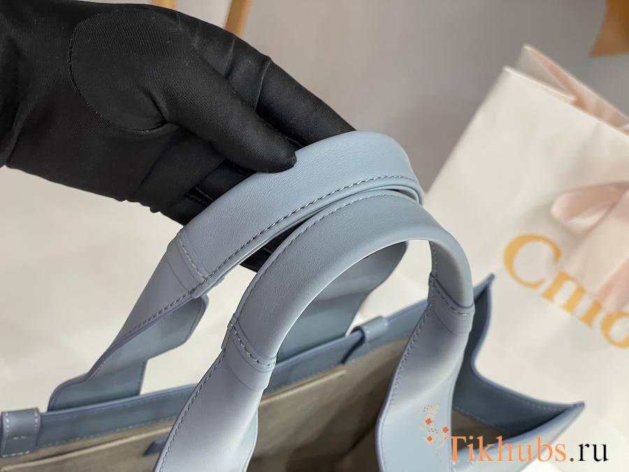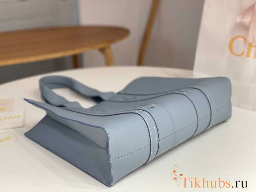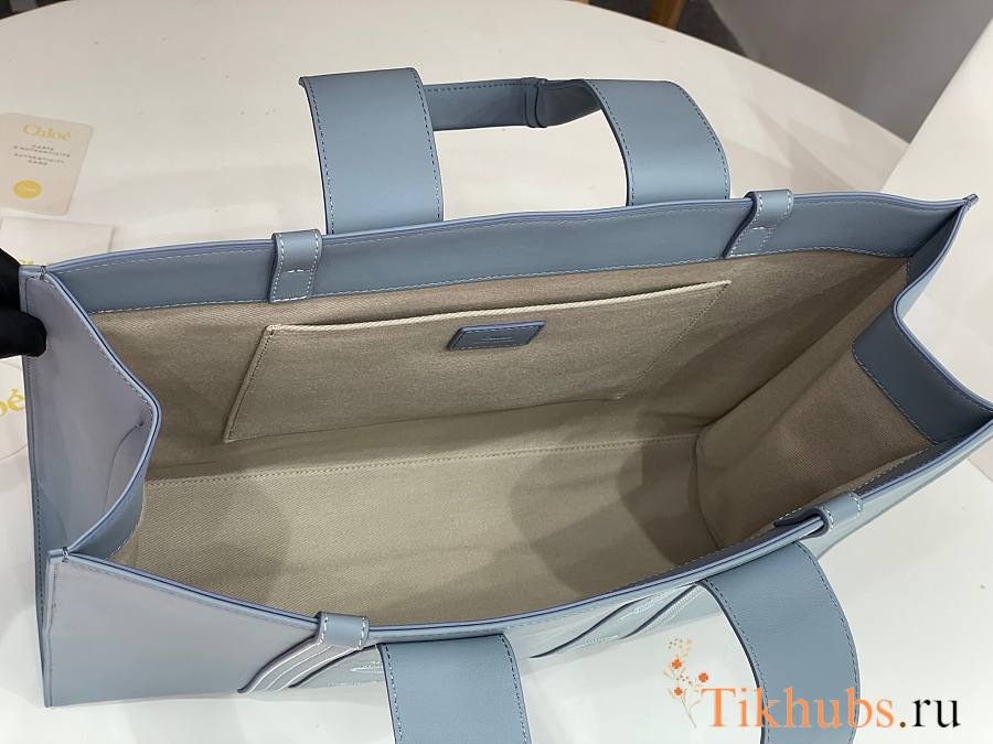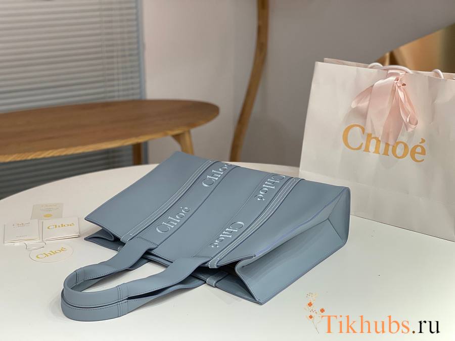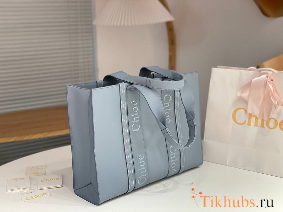 Chloe Large Woody Tote Bag Blue Calfskin 45x33x13cm