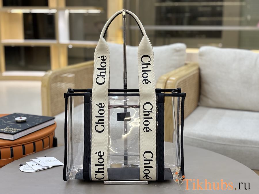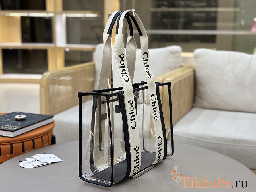 Chloe Woody Tote Bag Jelly & Leather Black 37x26x12cm