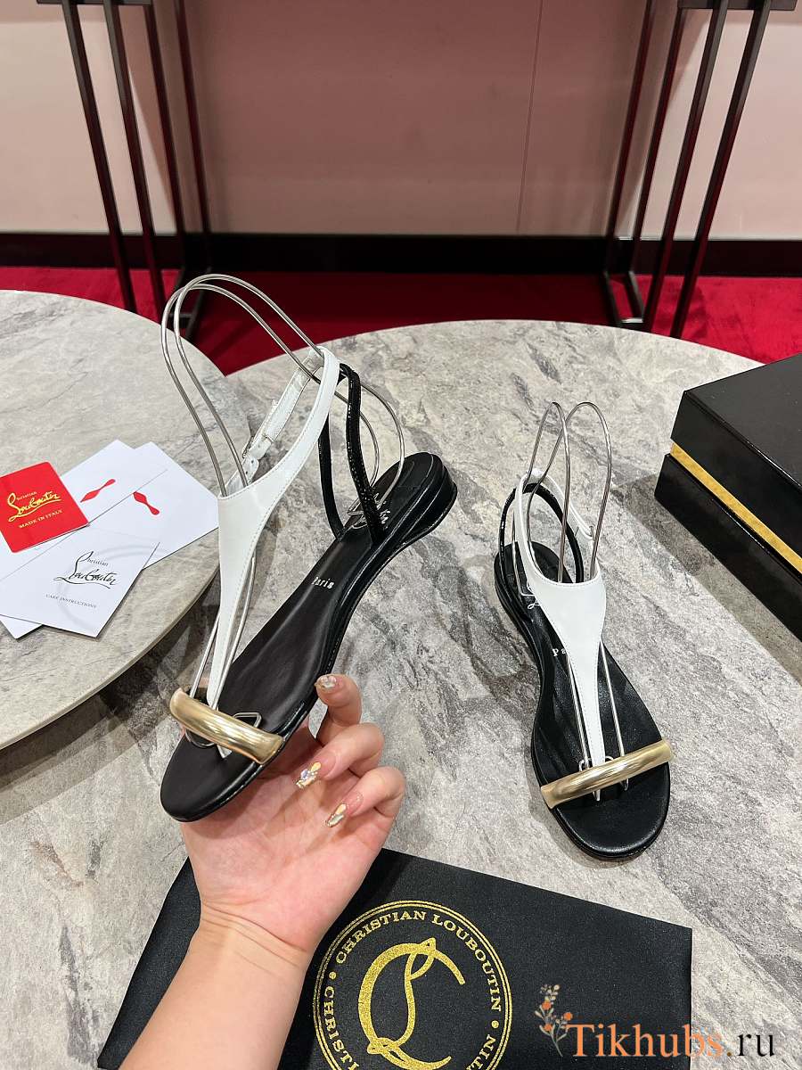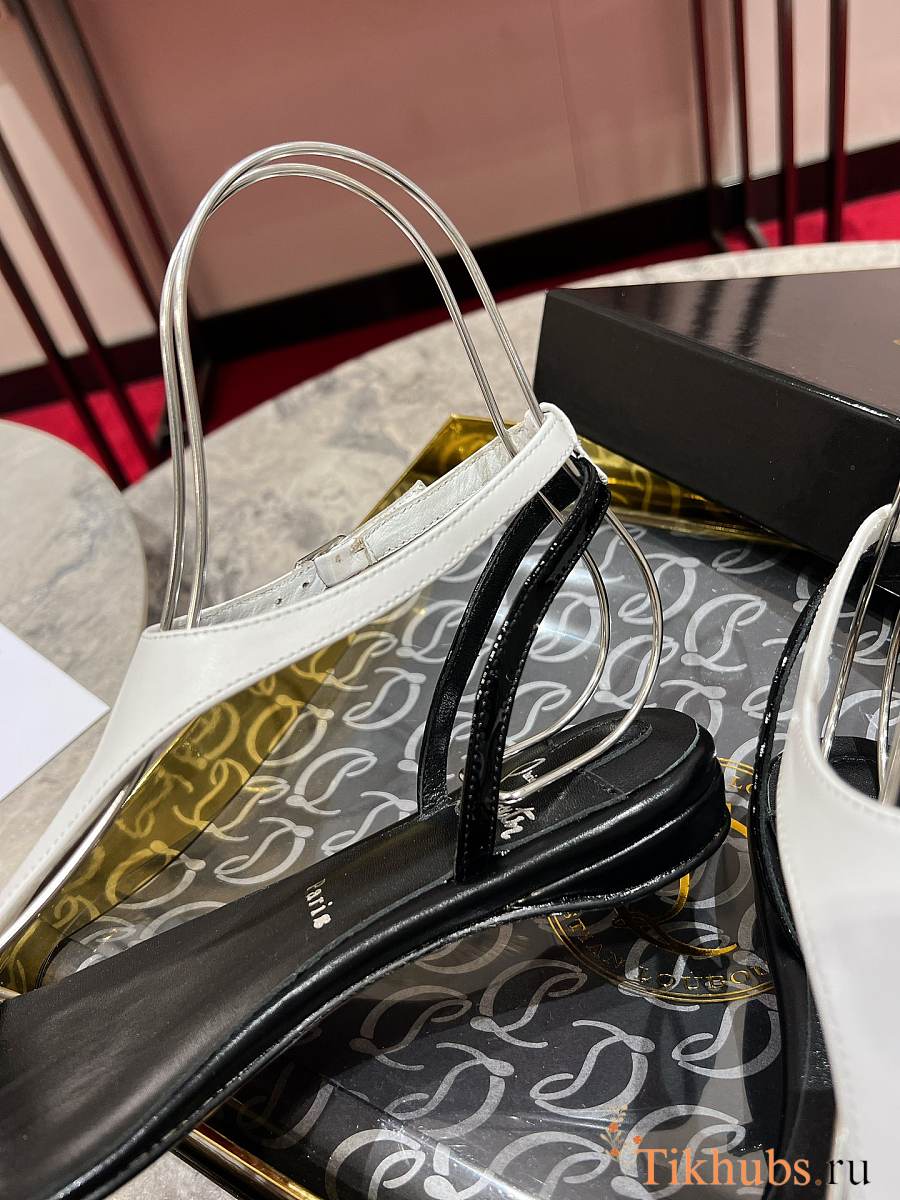 YSL-CASSANDRA logo letter clasp high heel woven leather sandals white