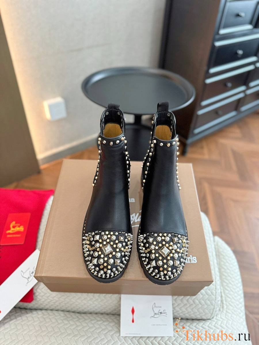 Christian Louboutin Calfskin Studded Chasse Black Boots