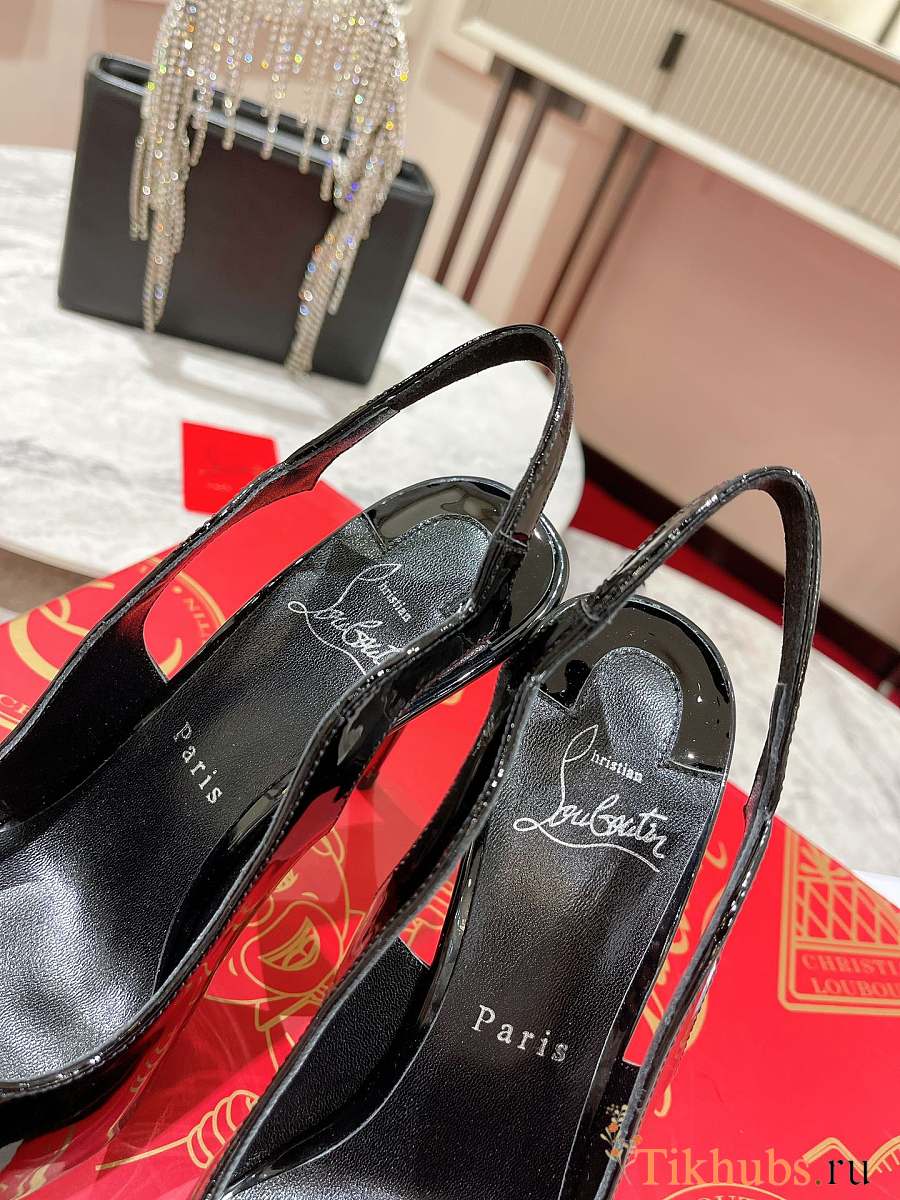 Christian Louboutin Hot Chick Black Patent Sling 100 mm Heel