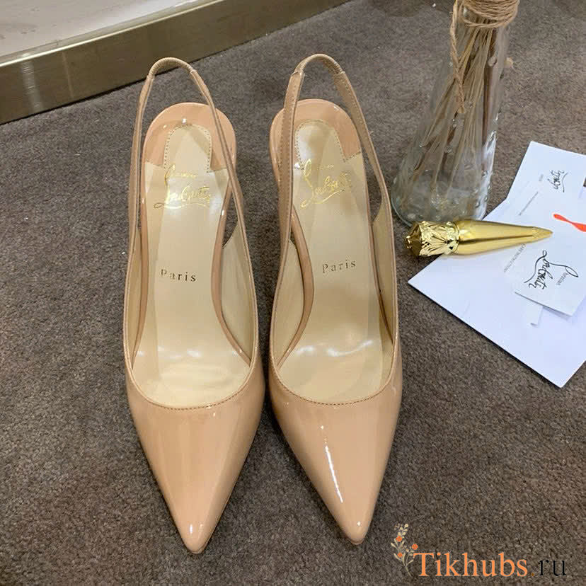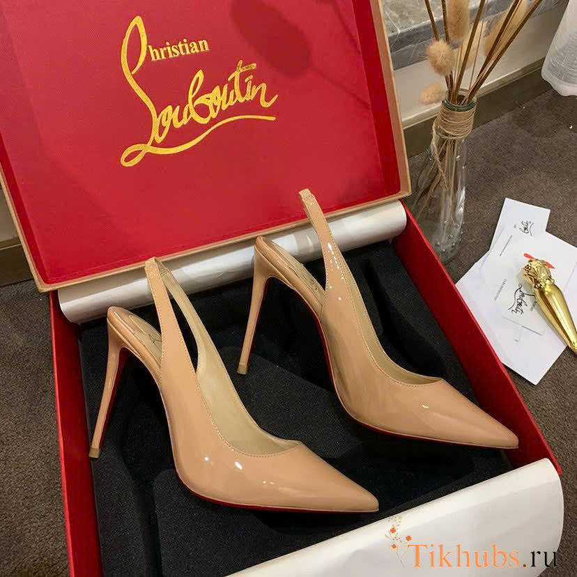 Christian Louboutin Patent Kate Sling 85 Pumps Nude