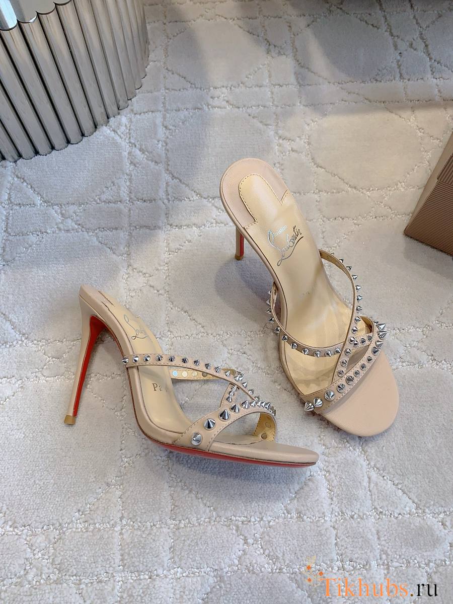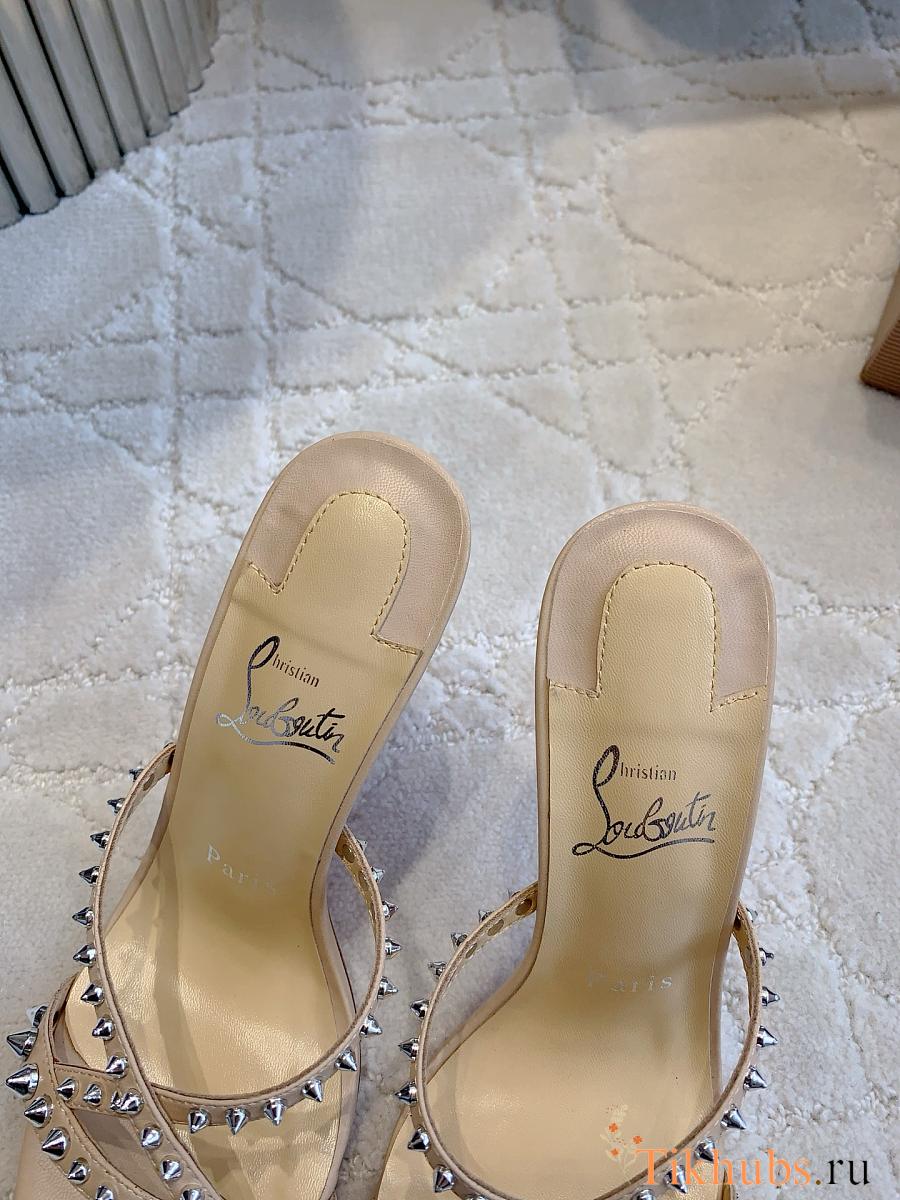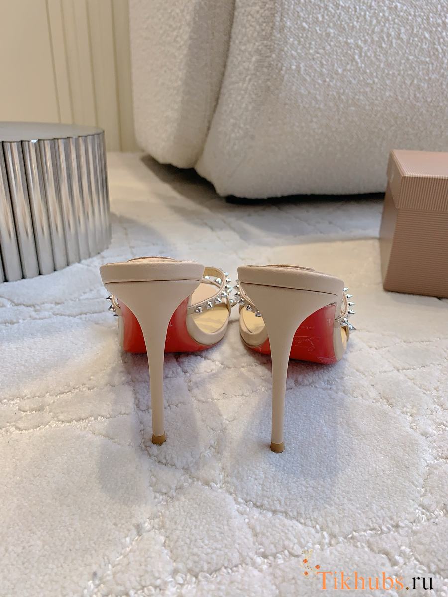 Christian Louboutin Tatoosh Spikes Beige Slide Sandals 8.5cm