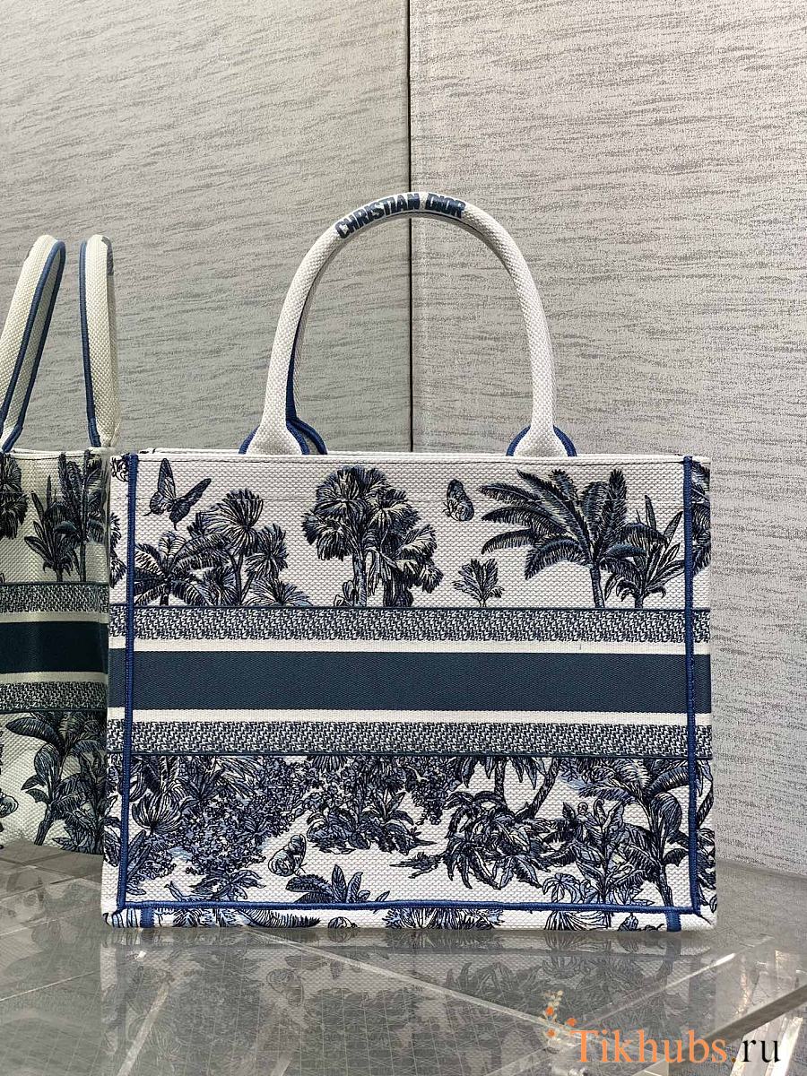 Dior Book Tote Dioriviera Medium White Blue Palms 36x27.5x16.5cm