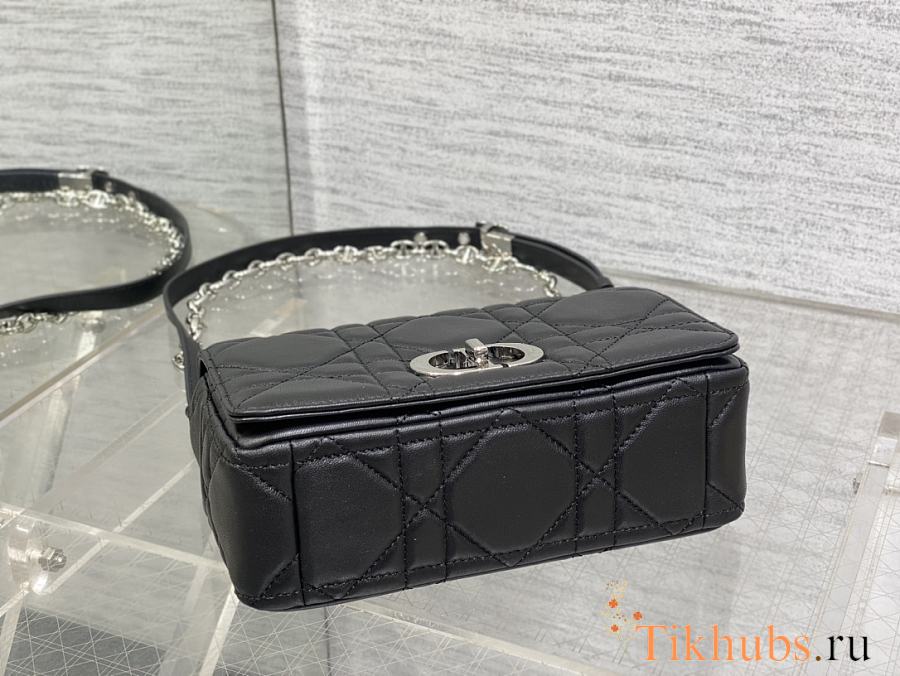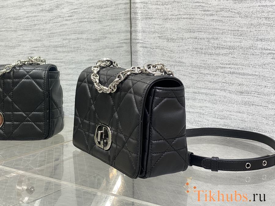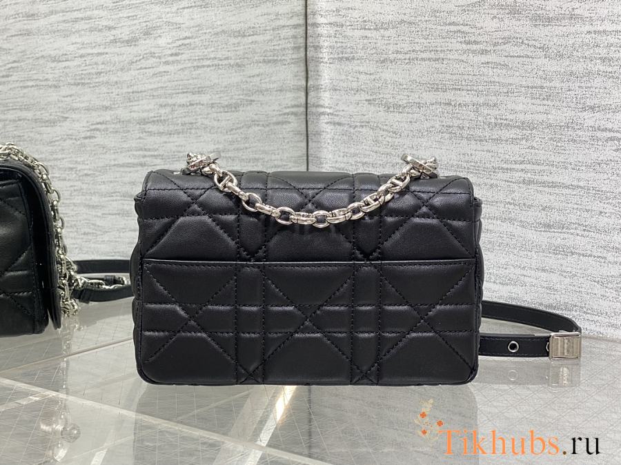 Dior Caro Small Soft Bag Black Lambskin Silver 20x13x7cm