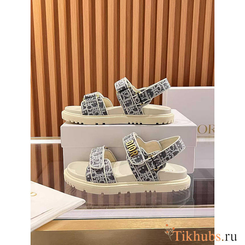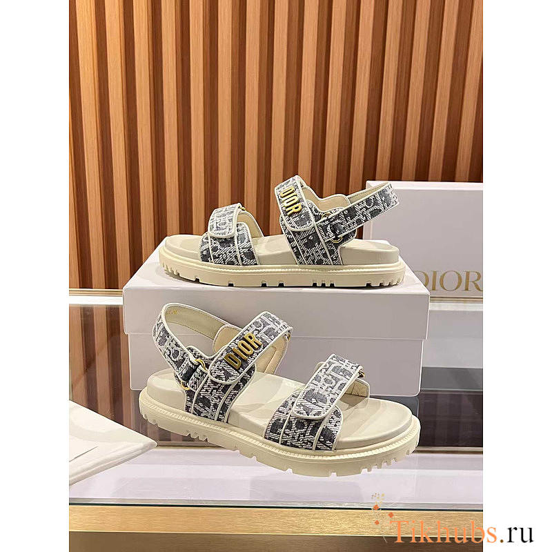 Dior Dioract Sandal Blue Ecru Oblique Raffia