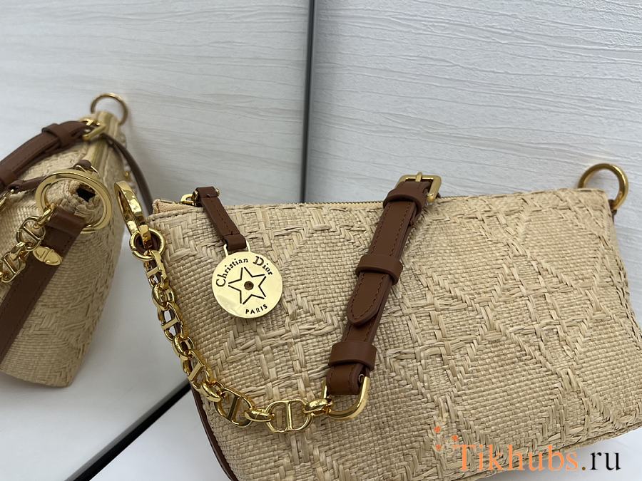Dior Diorstar Hobo Bag with Chain Beige Raffia 28.5 x 14.5 x 10 cm