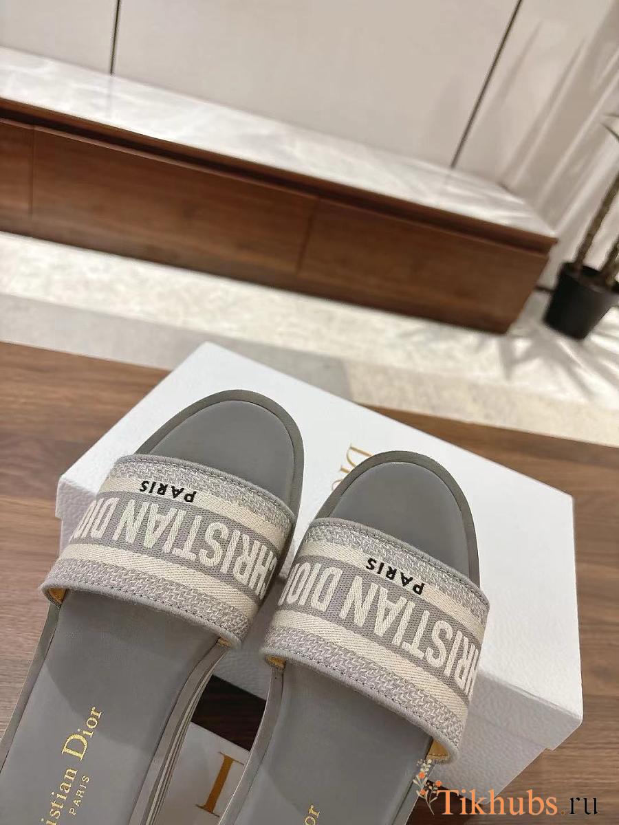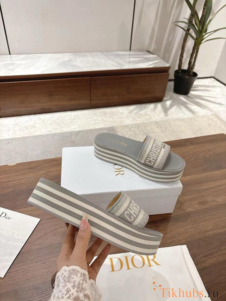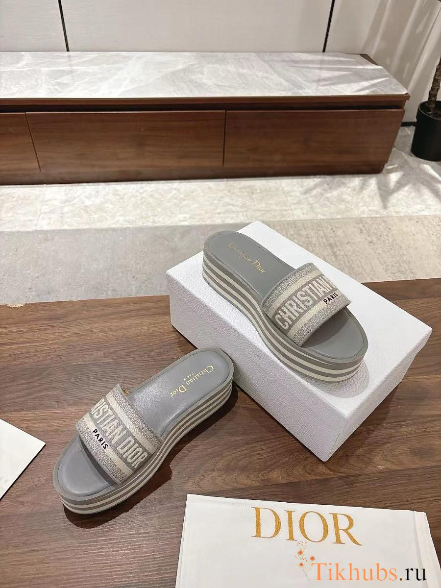 Dior Dway Platform Slide Grey Embroidered Cotton