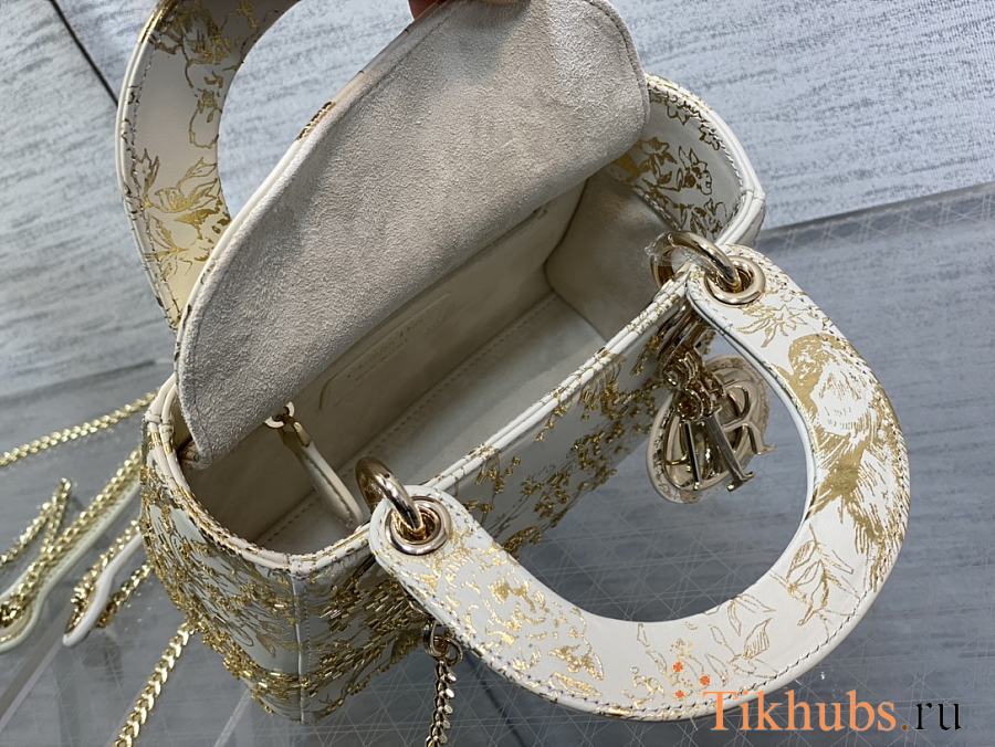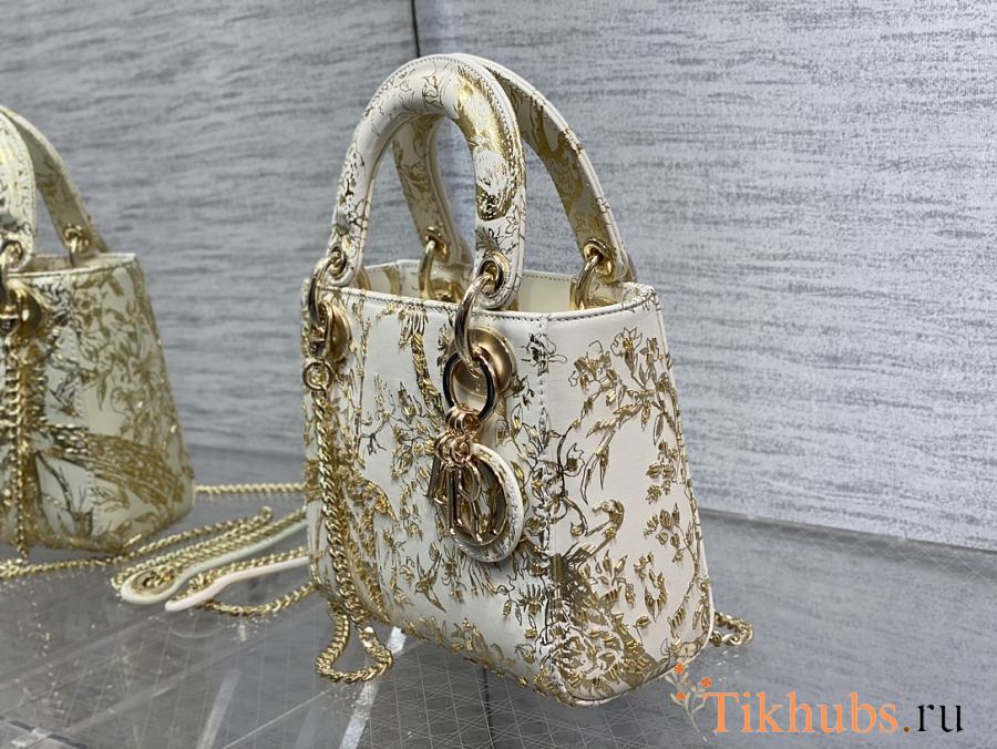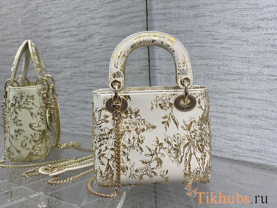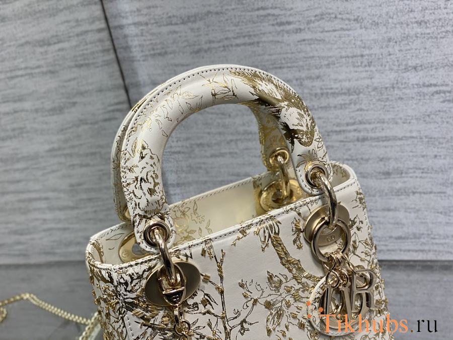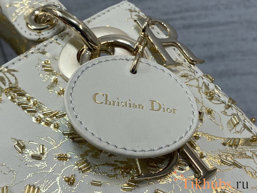 Dior Lady Bag White Calfskin Printed Bead D’Hiver 17cm