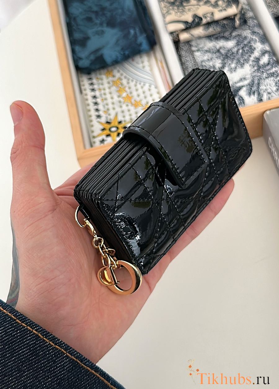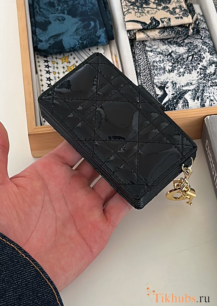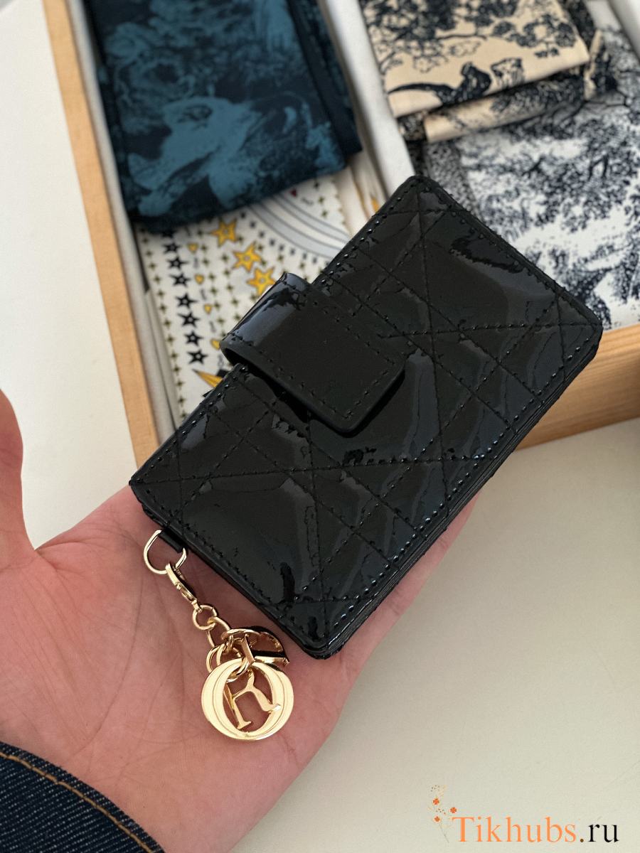 Dior Lady Jasmine Card Holder Black Patent 10.5cm