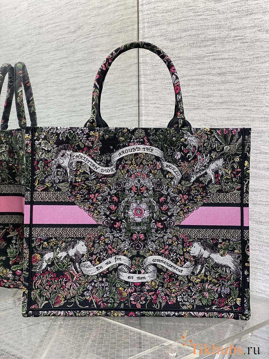Dior Large Book Tote Black Multicolor Around the World 42x18x35cm