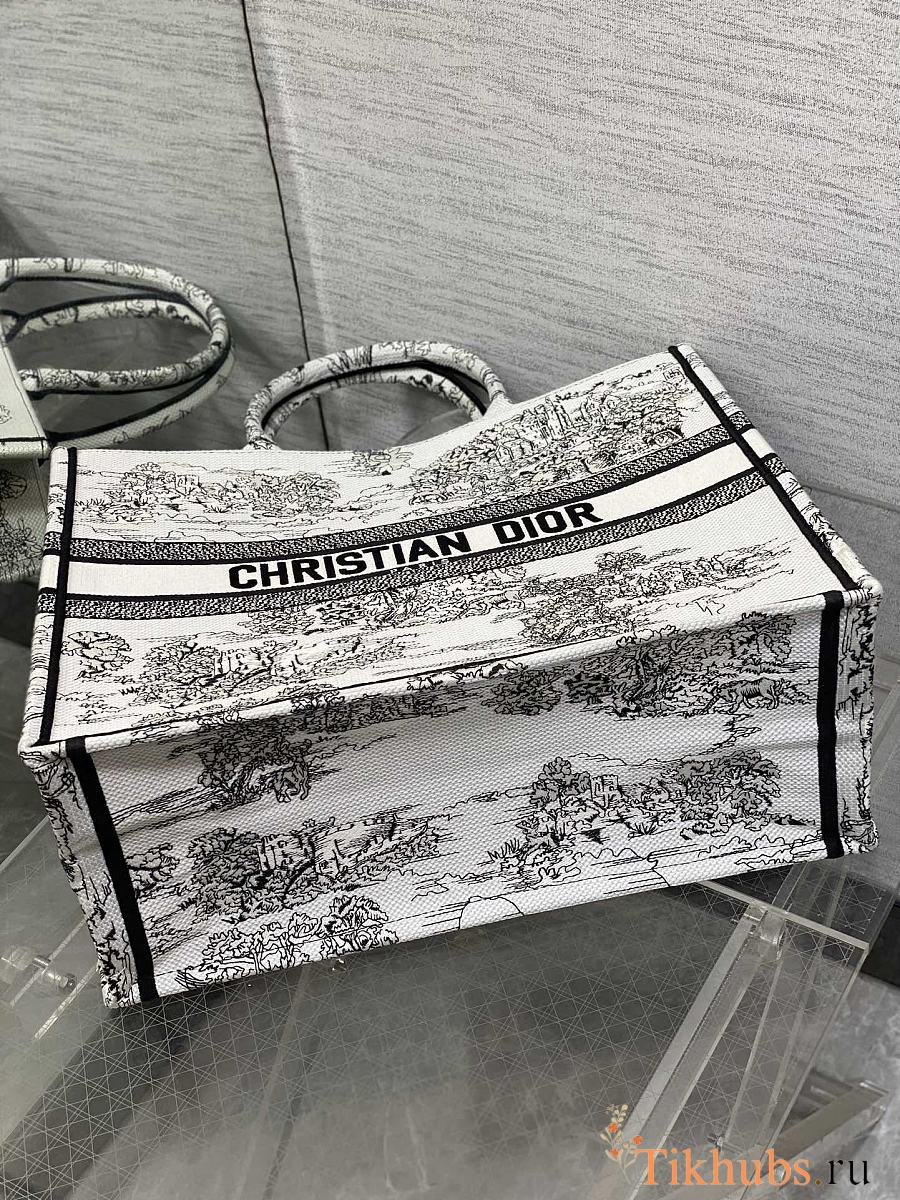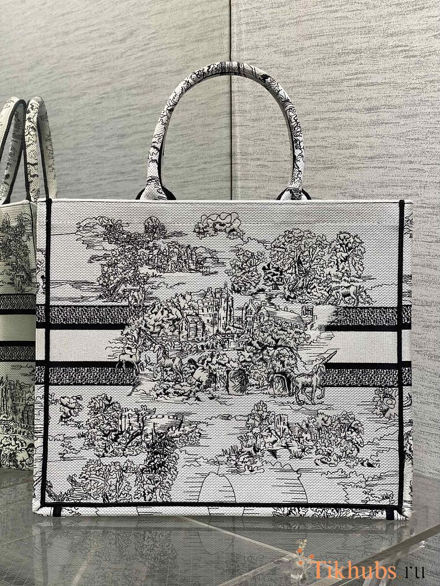Dior Large Book Tote White Black Toile de Jouy Scotland 42x18x35cm
