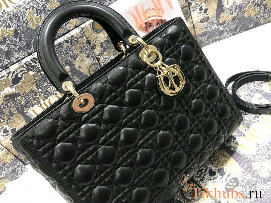 Dior Large Lady Bag Black Gold 32cm