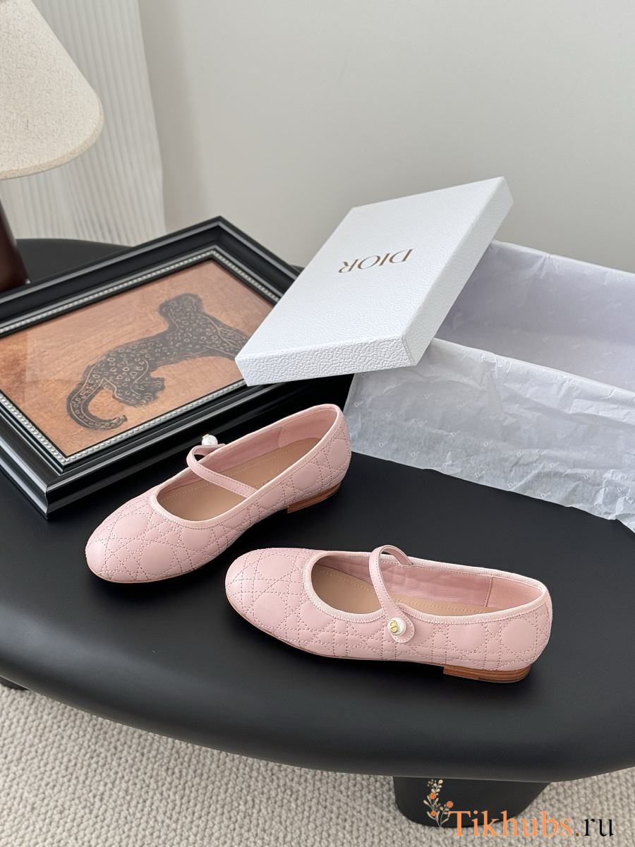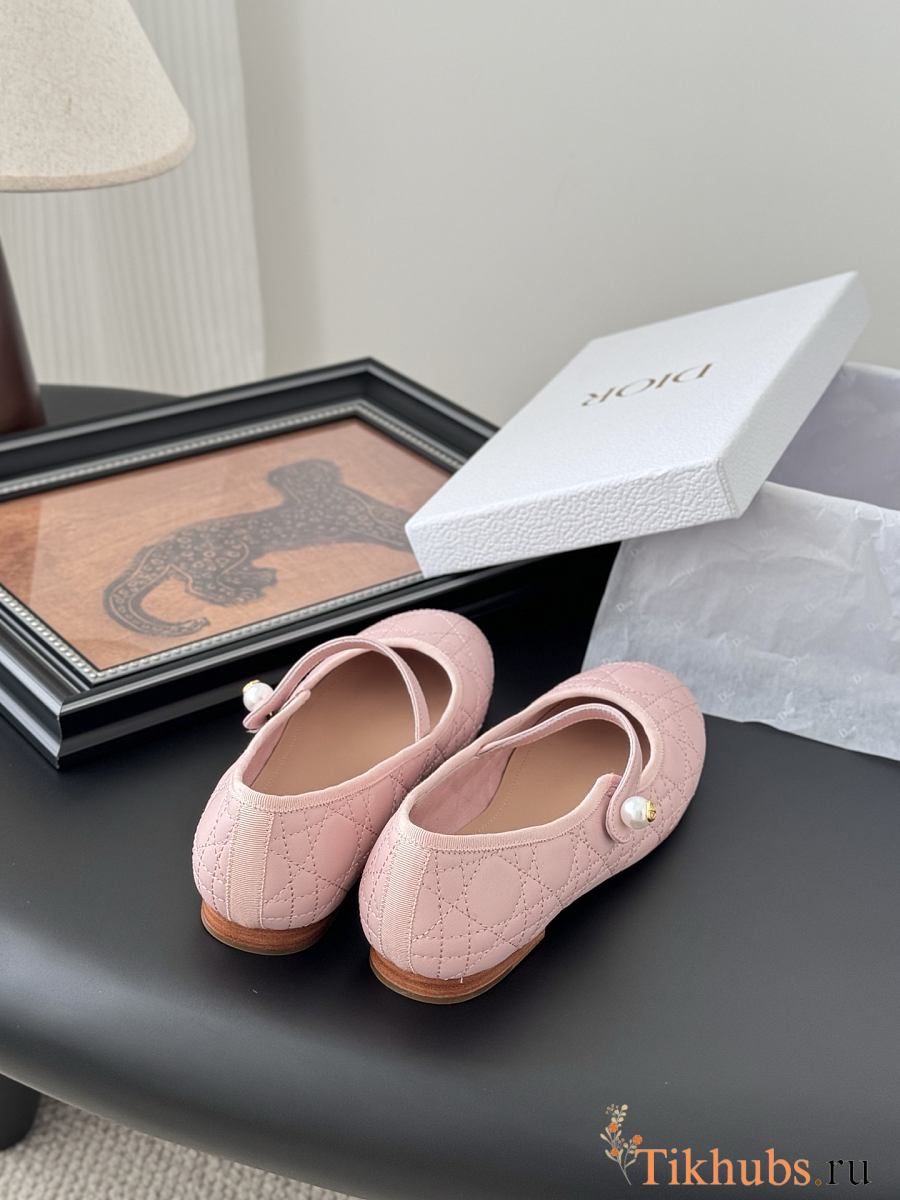 Dior Leather Pearl Ballerina Flats Pink