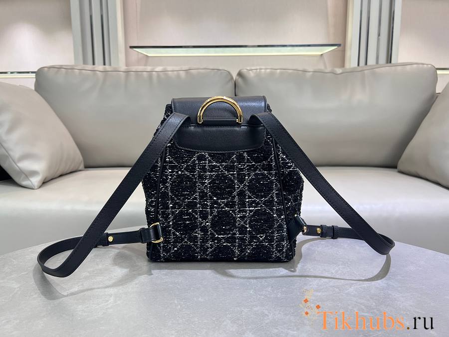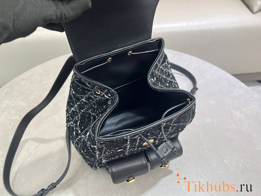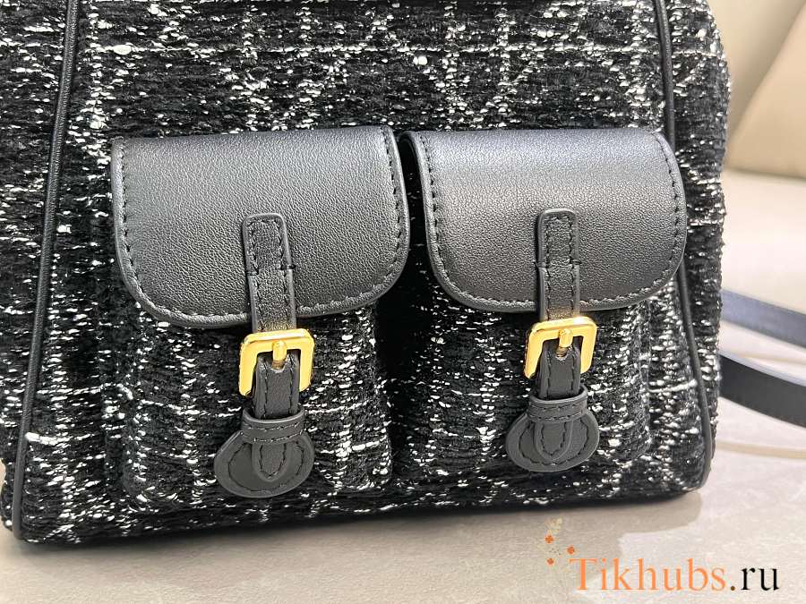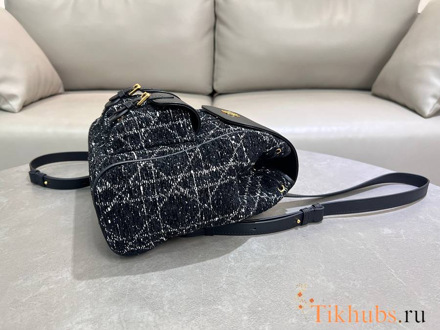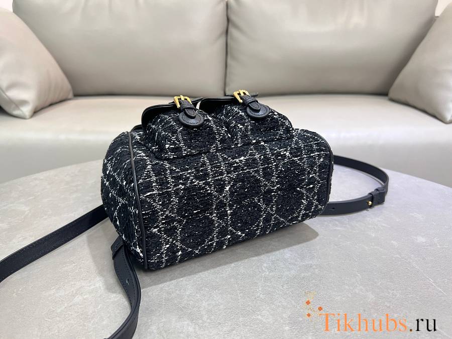 Dior Medium Caro Backpack Black Tweed White 23x26.5x12.5cm