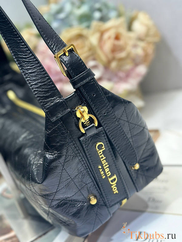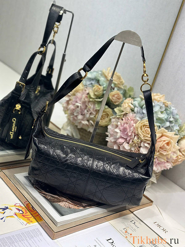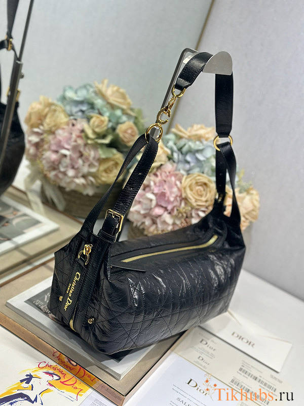 Dior Medium D-Journey Bag Calfskin Black Macrocannage 33x16x15cm