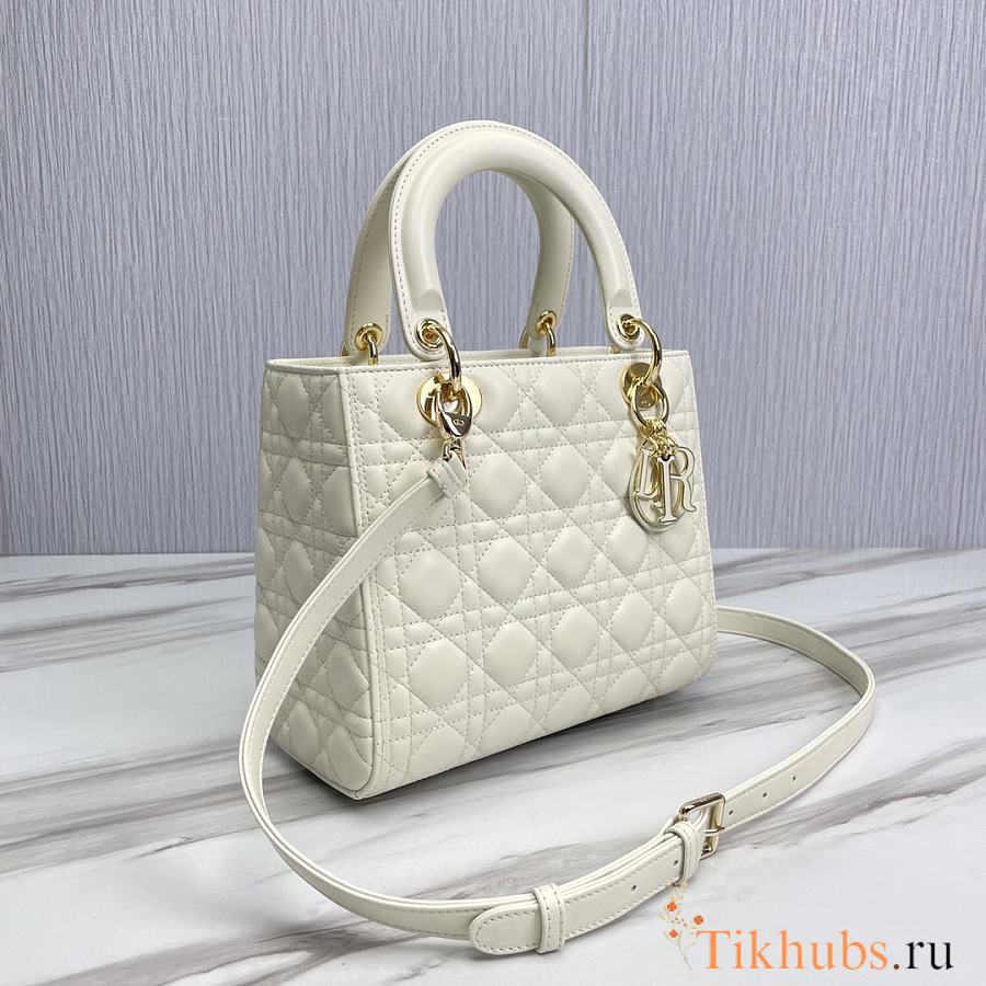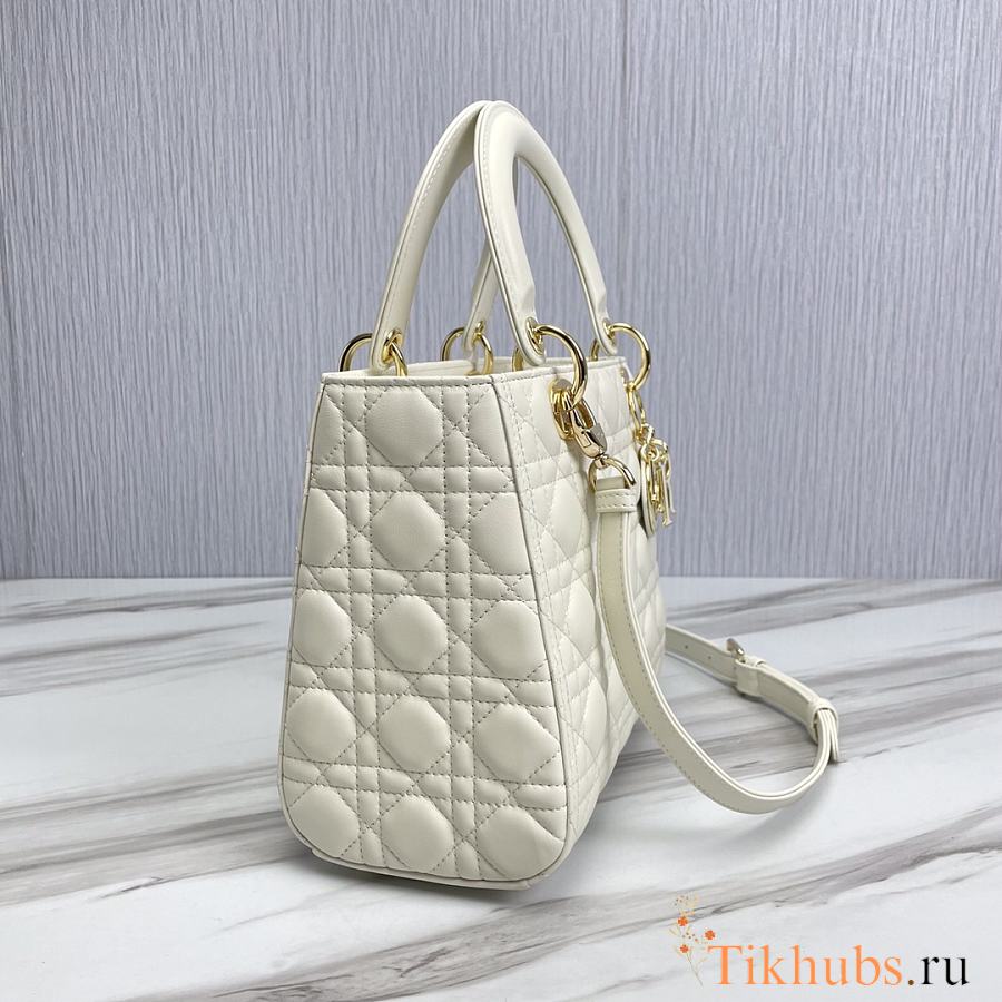 Dior Medium Lady Bag White Cannage Lambskin 24x20x11cm
