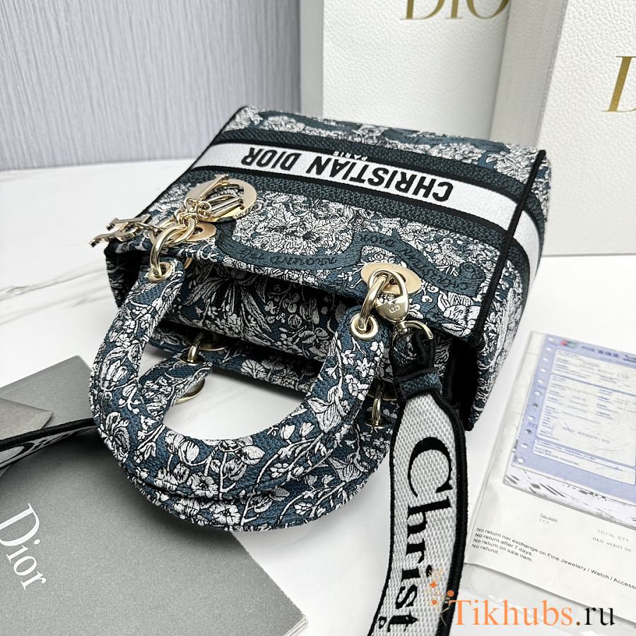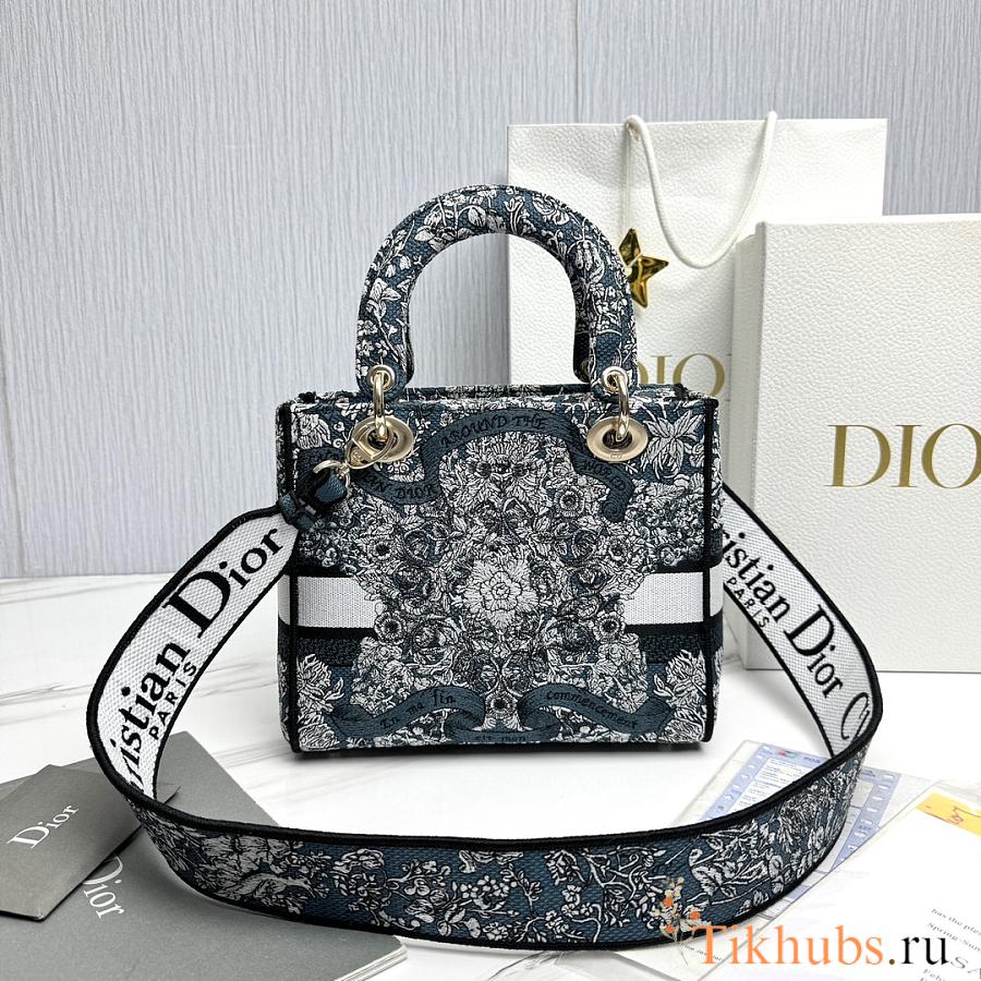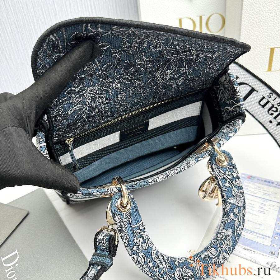 Dior Medium Lady D-Lite Bag Latte Blue 24x20x11cm