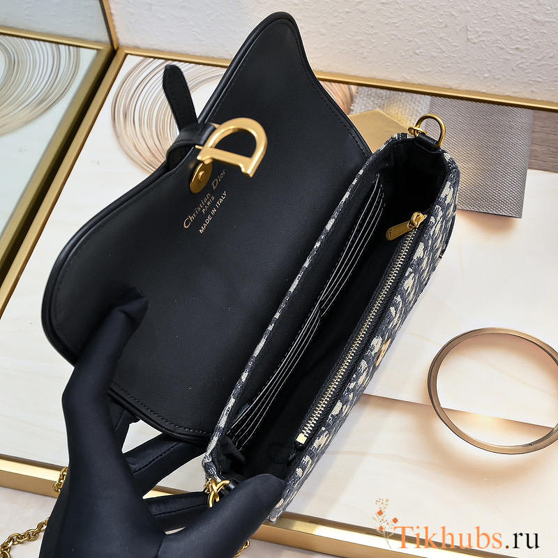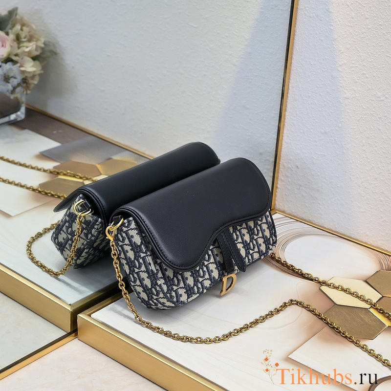 Dior Medium Saddle Pouch With Chain Blue 21.5x12.5x4.5cm