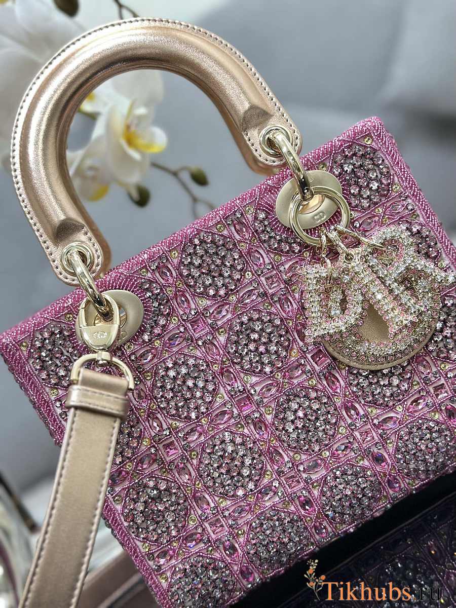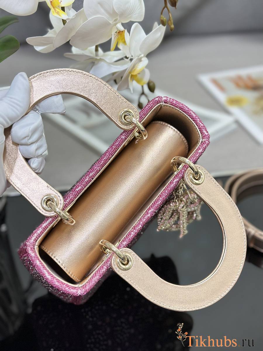 Dior Medium Lady Natural Wicker Bag Pink M0565 Size 24 x 20 x 11 cm