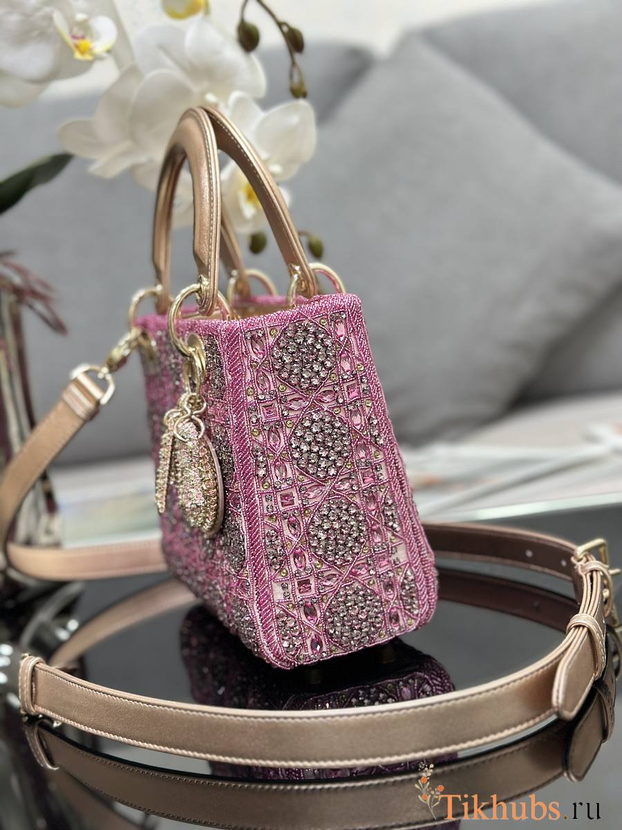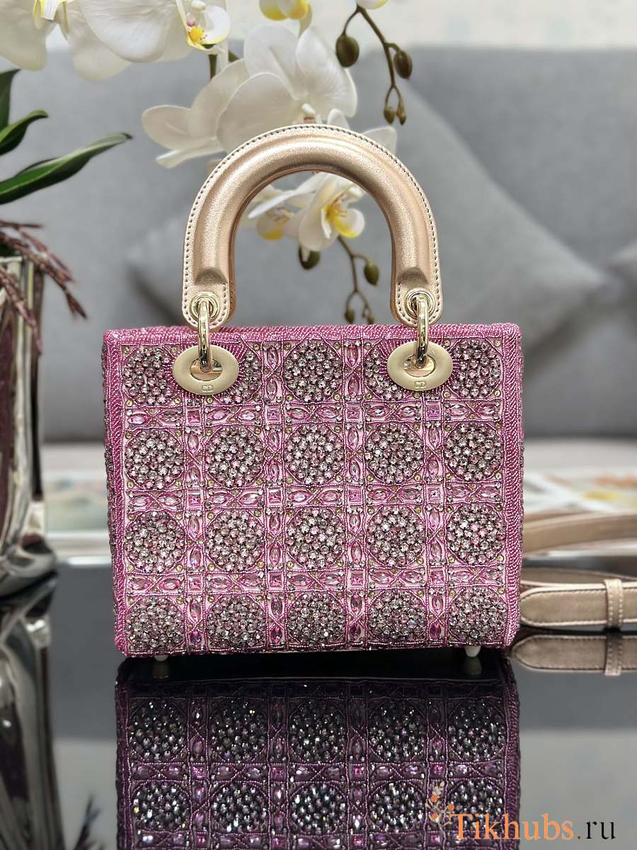 Dior Mini Lady Bag Gray Smooth Calfskin Satin Rose 20 x 17 x 8 cm