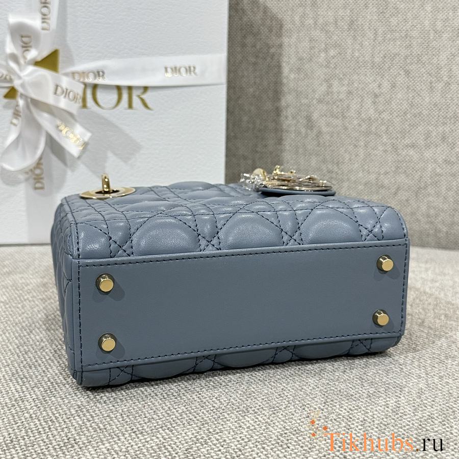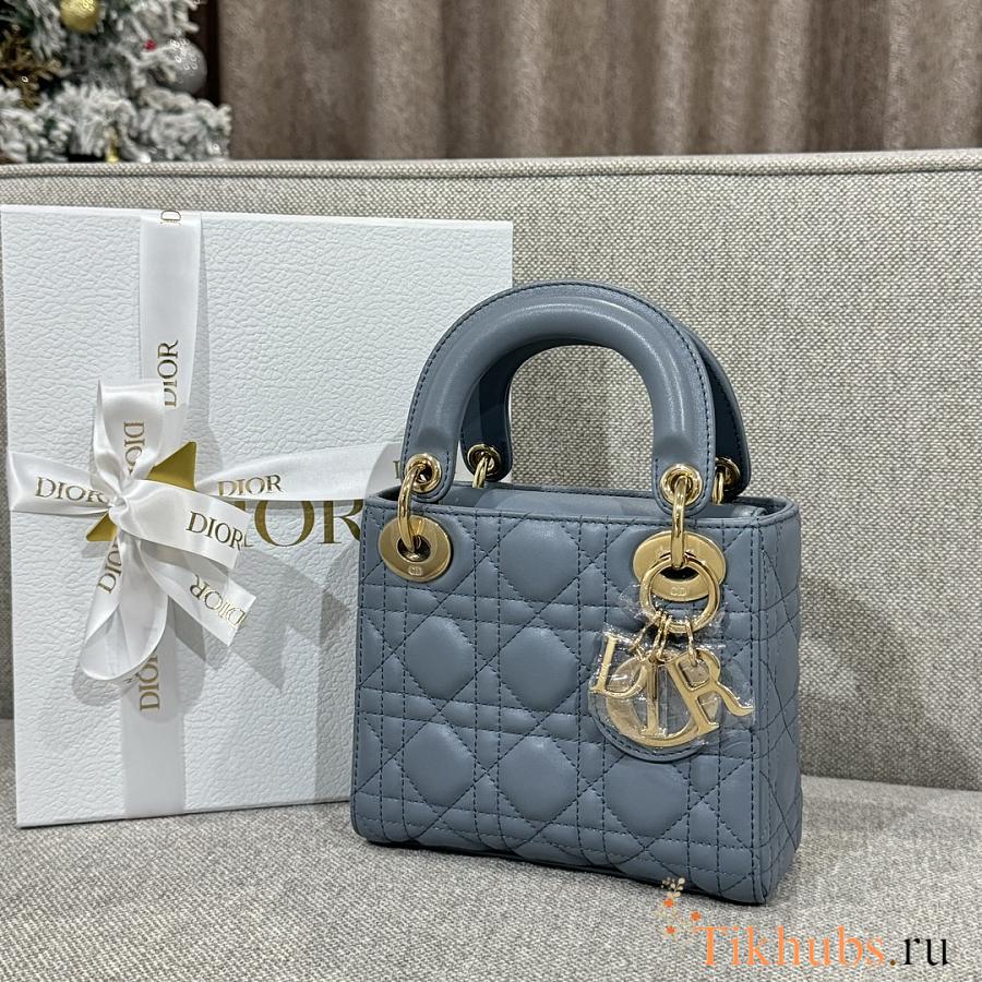 Dior Mini Lady Lambskin Blue Gold 17cm