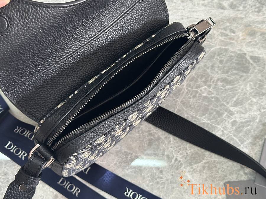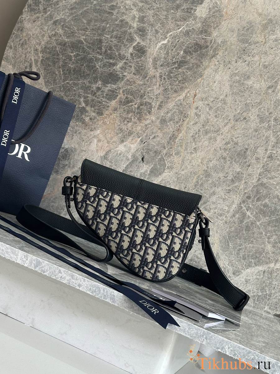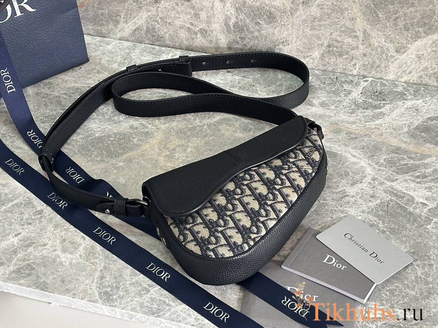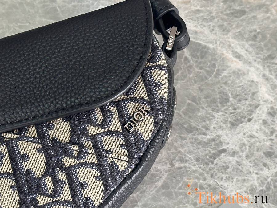 Dior Mini Saddle Bag Beige Black Oblique 19.5x15x5.5cm